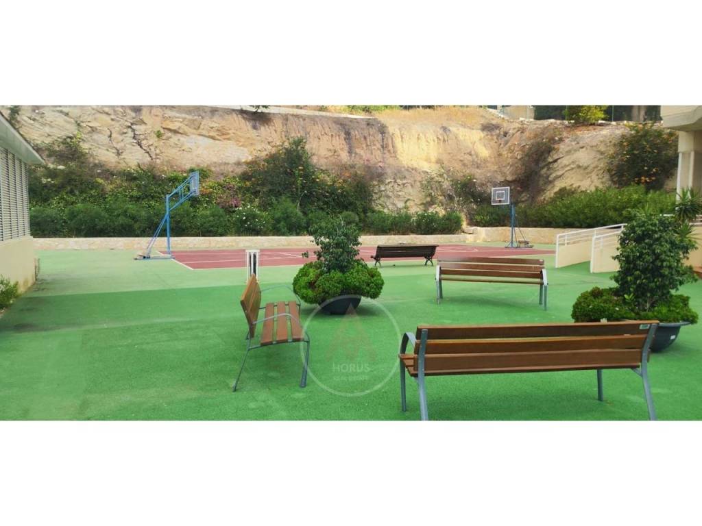 Urbanización completa, con piscina, cancha de tenis, cancha de baloncesto, parque infantil, zona exterior con máquinas de ejercicio, duchas y servicios comunes.