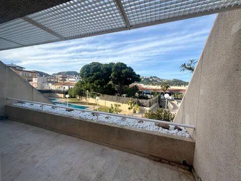 Descubre este fantástico apartamento de 110m2 en un complejo residencial muy céntrico con piscina. El apartamento se encuentra en primera planta, el edificio cuenta con ascensor, facilitando acceso al apartamento directamente desde el garaje. Se distribuye en 2 habitaciones dobles con armarios empotrados, un amplio baño con bañera, una cocina completamente nueva a estrenar con coladuria y un gran y luminoso salón - comedor con acceso a la terraza de 33m2 con vistas a la piscina. Dispone de aire acondicionado frio y calor en todas las estancias, ha sido recientemente reformado con electrodomésticos todos nuevos a estrenar y se alquila sin amueblar. El complejo cuenta con una cuidada piscina y zonas comunes donde disfrutar de momentos de relax. No se admiten mascotas. Contrato de larga duración, se solicita 2 meses de fianza y garantía en el pago. El apartamento ofrece una plaza de aparcamiento por 100Euros mensuales adicionales. No dude en contactar con nosotros para visitar este bonito apartamento.