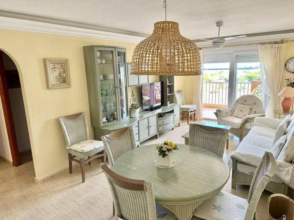 Se alquila amplio y luminoso apartamento ubicado en la tercera planta de un edificio residencial en La Manga del Mar Menor, Murcia. Esta propiedad amueblada ofrece una excelente ubicación a escasos metros de la playa y cuenta con espacios ideales para una vida cómoda en la costa.