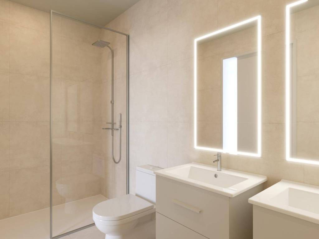 Modernos apartamentos de nueva construcción en San Cayetano, Torrepacheco, MurciaVida contemporánea en un tranquilo entorno mediterráneoEste exclusivo complejo residencial de nueva construcción está situado en San Cayetano, Murcia, en el municipio de Torre Pacheco, a solo 9 km del mar y rodeado de varios campos de golf de renombre. El proyecto combina tranquilidad, comodidad y diseño contemporáneo, ofreciendo un entorno ideal para vivir de forma permanente, pasar las vacaciones o invertir en la Costa Cálida.La promoción consta de 72 apartamentos de 2 y 3 dormitorios y 2 baños, uno de ellos en suite, distribuidos en cuatro modernos edificios. También está prevista una segunda fase con bungalows y villas, lo que añadirá aún más valor y atractivo a la zona.Zonas comunes diseñadas para el relax y el bienestarLos residentes disfrutarán de espacios comunes cuidadosamente ajardinados que incluyen dos piscinas, hermosos jardines y un gimnasio totalmente equipado. Estas zonas crean un entorno agradable y social donde los vecinos pueden relajarse, hacer ejercicio y disfrutar del estilo de vida mediterráneo.El complejo residencial también cuenta con 40 kW de paneles solares fotovoltaicos que ayudan a sufragar los gastos de electricidad de la comunidad, contribuyendo a un entorno de vida más sostenible y eficiente desde el punto de vista energético.Apartamentos con espacios exteriores privados y soláriumCada apartamento está diseñado para aprovechar al máximo la vida al aire libre. Las propiedades de la planta baja incluyen jardines privados, los apartamentos de la primera planta ofrecen amplias terrazas y las viviendas de la última planta se benefician tanto de una terraza como de un solárium privado en la azotea. Todas las propiedades incluyen una cocina de verano en la terraza o el solárium, perfecta para disfrutar del sol durante todo el año.Todas las viviendas cuentan con una plaza de aparcamiento exterior y un trastero privado en el sótano, lo que añade comodidad y practicidad.Características de calidad e instalaciones energéticamente eficientesEstos apartamentos de nueva construcción se entregan con acabados de calidad e instalaciones modernas para garantizar el confort y la funcionalidad, incluyendo:Cocina totalmente equipada con electrodomésticosBaños totalmente equipados con muebles, espejos, iluminación y mamparas de duchaPreinstalación para aire acondicionado por conductosSistema aerotérmico para agua calienteLa combinación de materiales modernos y sistemas energéticamente eficientes hace que estas viviendas sean ideales para su uso durante todo el año.Excelente ubicación cerca de golf, playas y serviciosSan Cayetano es un pueblo tranquilo y bien comunicado, con servicios locales, tiendas y comercios. Su ubicación estratégica permite un fácil acceso a las playas, los campos de golf y las principales conexiones de transporte.Las distancias clave a los puntos de interés incluyen:Playas del Mar Menor 9 kmRoda Golf 6 kmGolf La Serena 14 kmLos Alcázares 10 kmCartagena 30 kmAeropuerto de Murcia Corvera 25 kmAeropuerto de Alicante 90 kmAsegure hoy mismo su propiedad en San CayetanoEste moderno complejo residencial ofrece una excelente oportunidad para disfrutar de la vida mediterránea en una zona tranquila y bien comunicada. Póngase en contacto con nosotros hoy mismo para obtener más información y reservar su apartamento de nueva construcción en San Cayetano.