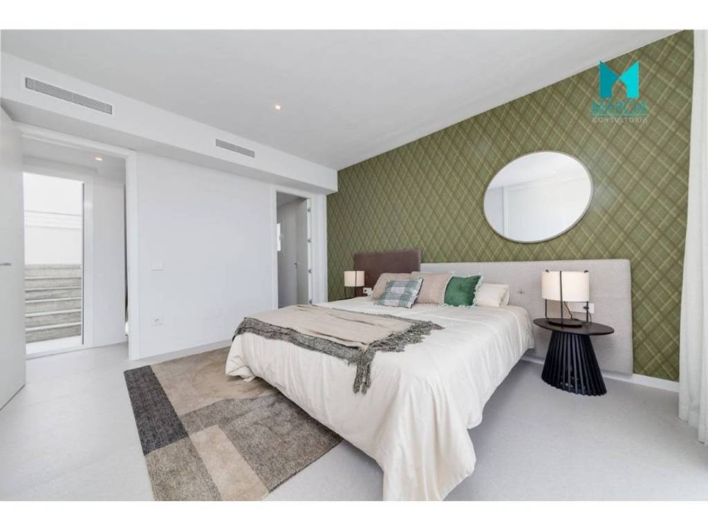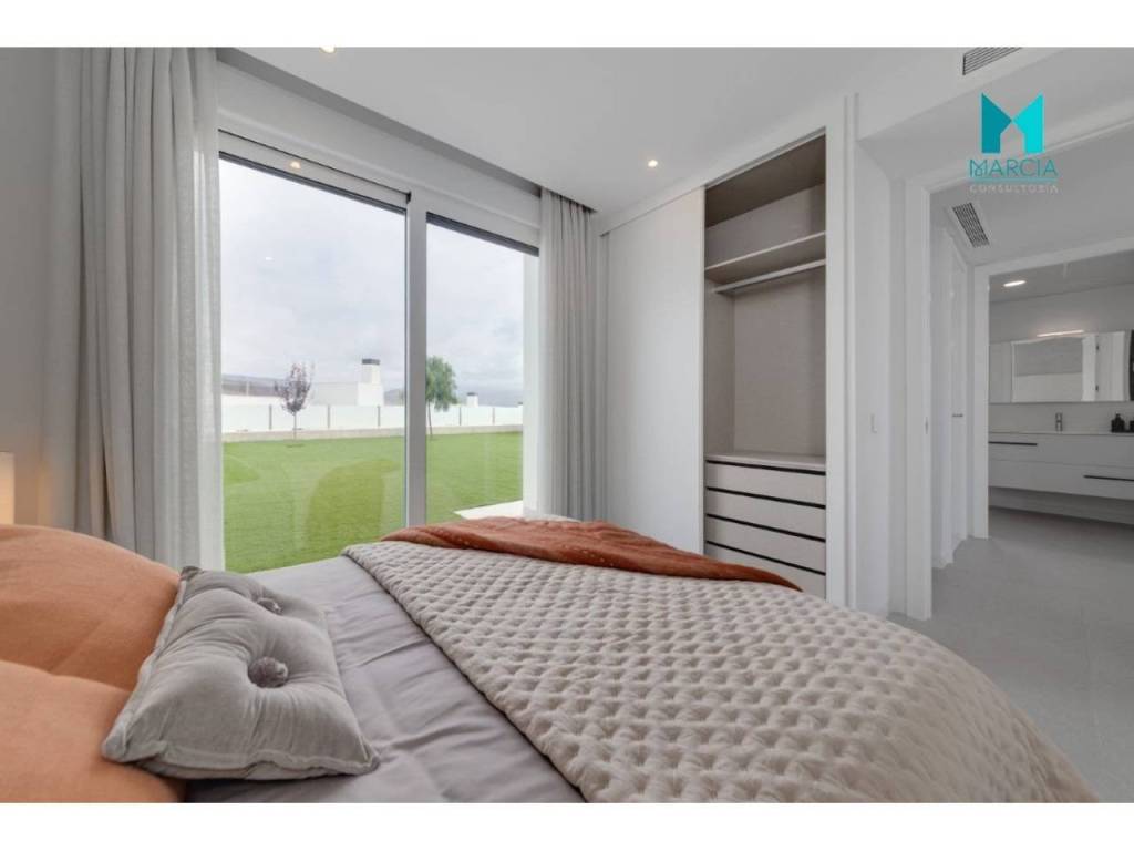 OBRA NUEVA. Excelente VIVIENDA UNIFAMILIAR independiente con altas calidades en urbanización residencial en expansión. Modernas, con domótica y gran aprovechamiento de espacio y luz. Dispone de una superficie de 119,68 m2 constr. Consta de tres dormitorios, salón comedor, cocina amueblada y equipada en isla, tres baños (uno en suite). Cuenta con 2 terrazas, planta baja y primera (total 120,98 m2) y SOLARIUM de 50,56 m2. Toda la edificación consta de dos alturas. Adicionalmente dispone de garaje de gran superficie 18,00 m2 y piscina de 18,00 m2. Todo ello, en una magnífica parcela privada de 405,00 m2.