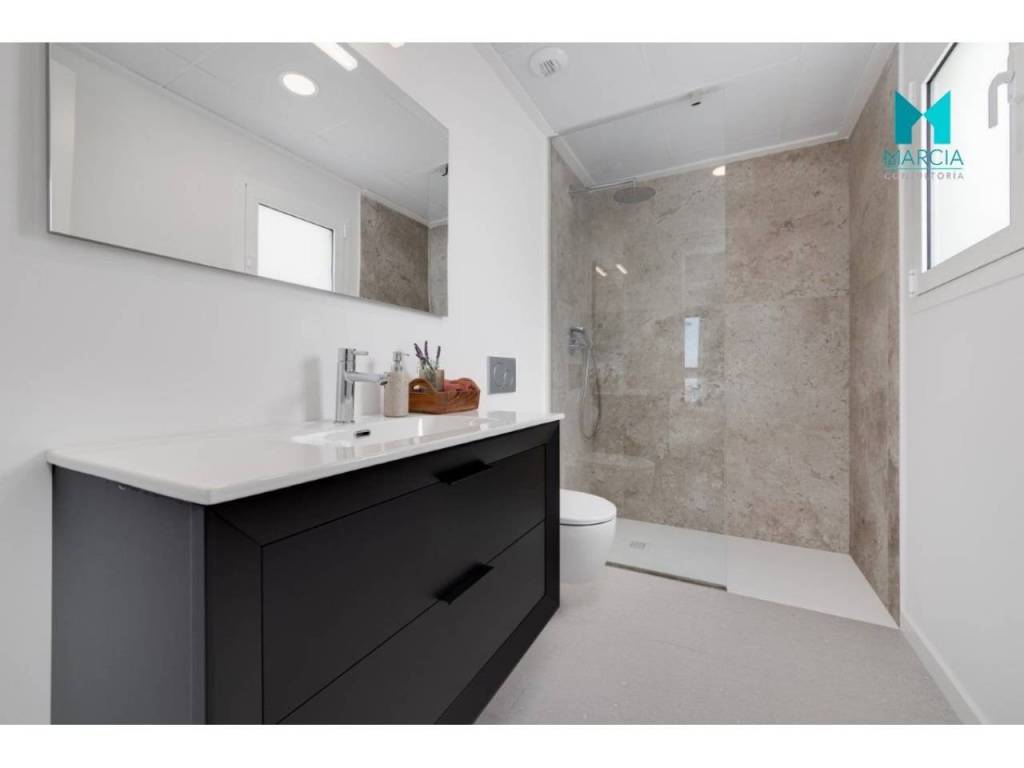 Armarios en dormitorios con puertas correderas, lacado blanco y freno amortiguación totalmente acabados con cajoneras, baldas y perchero. Interior de los armarios forrados en madera. Preinstalación completa de conductos de climatización. Sistema de ventilación mecánica en baños y cocina, renovación de aire y extracción de humos.