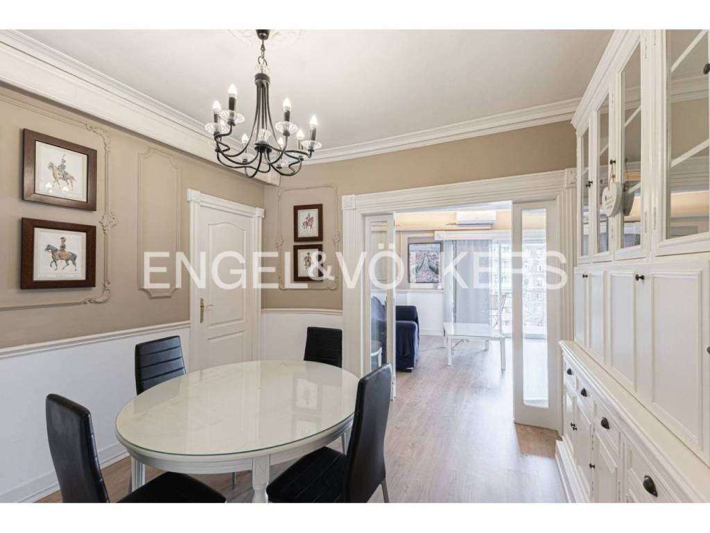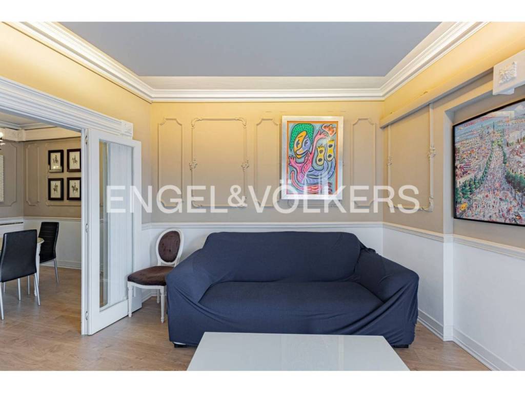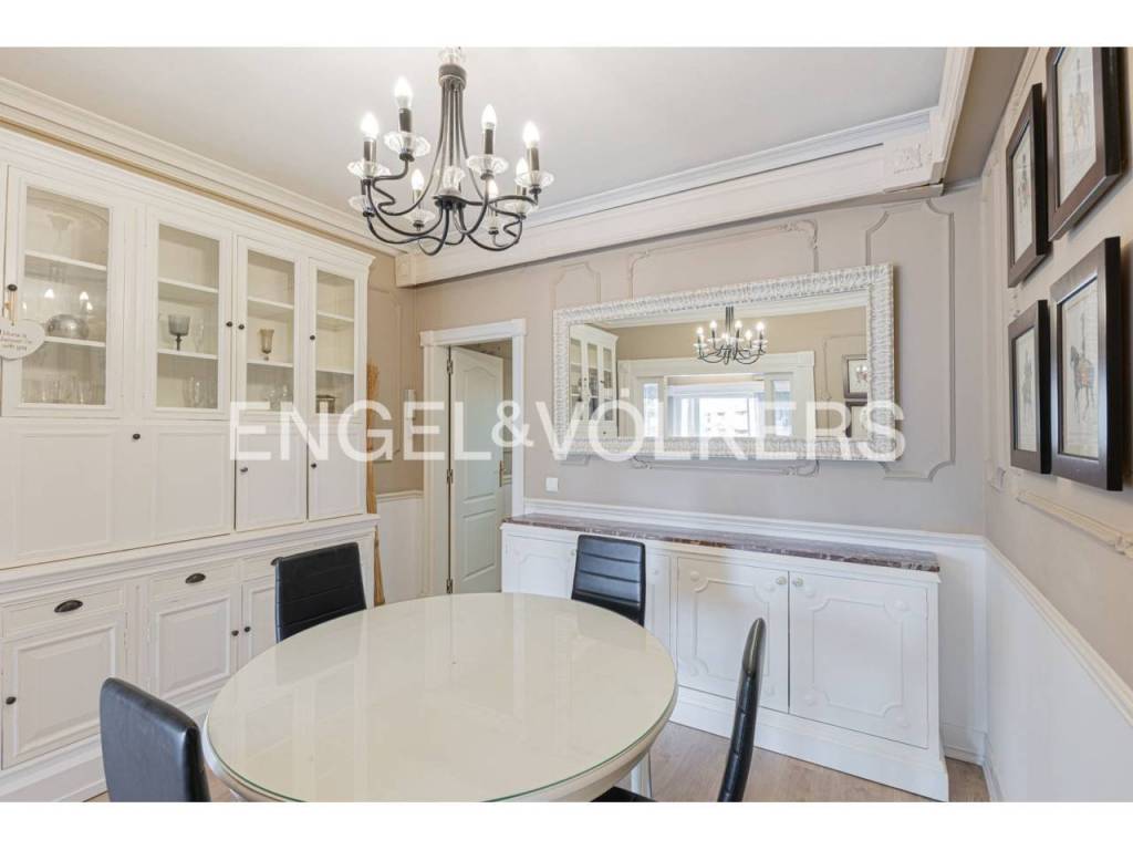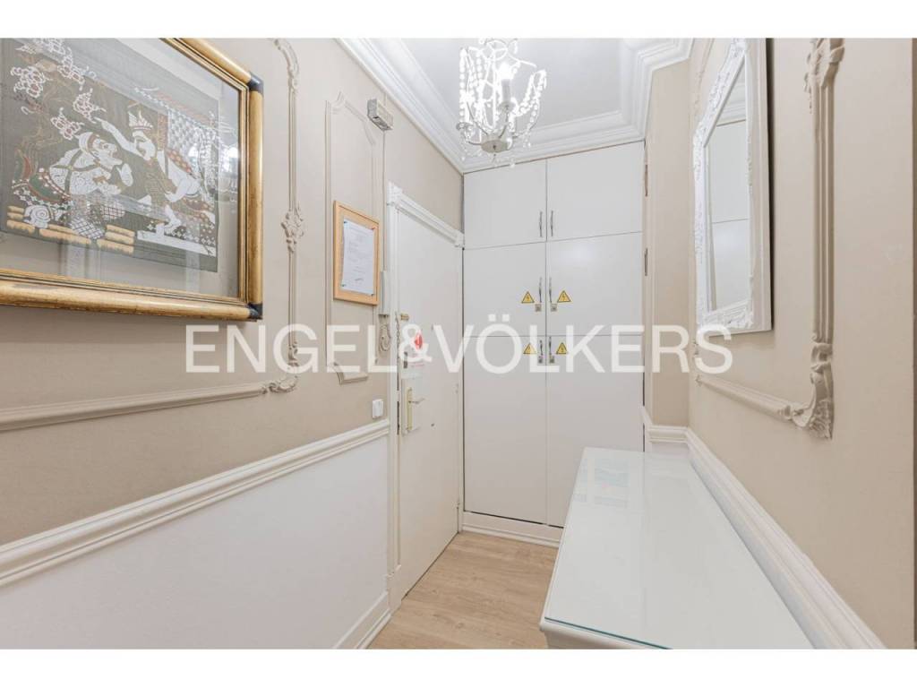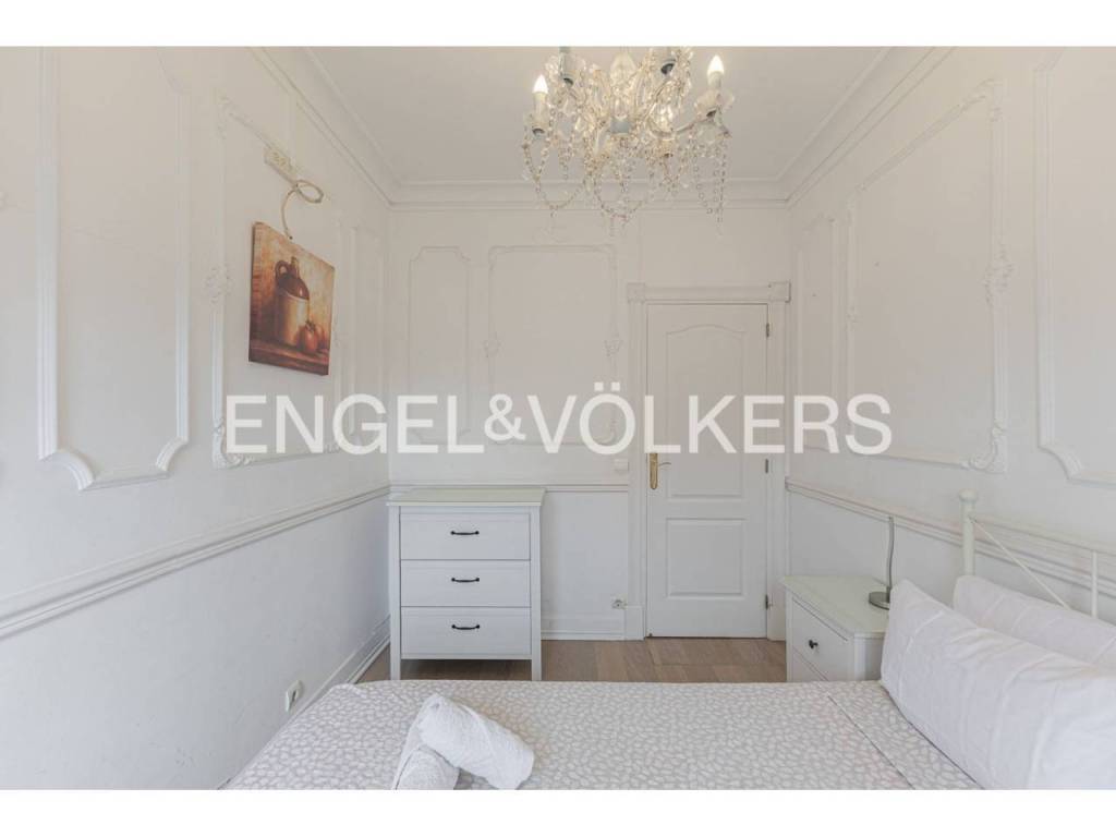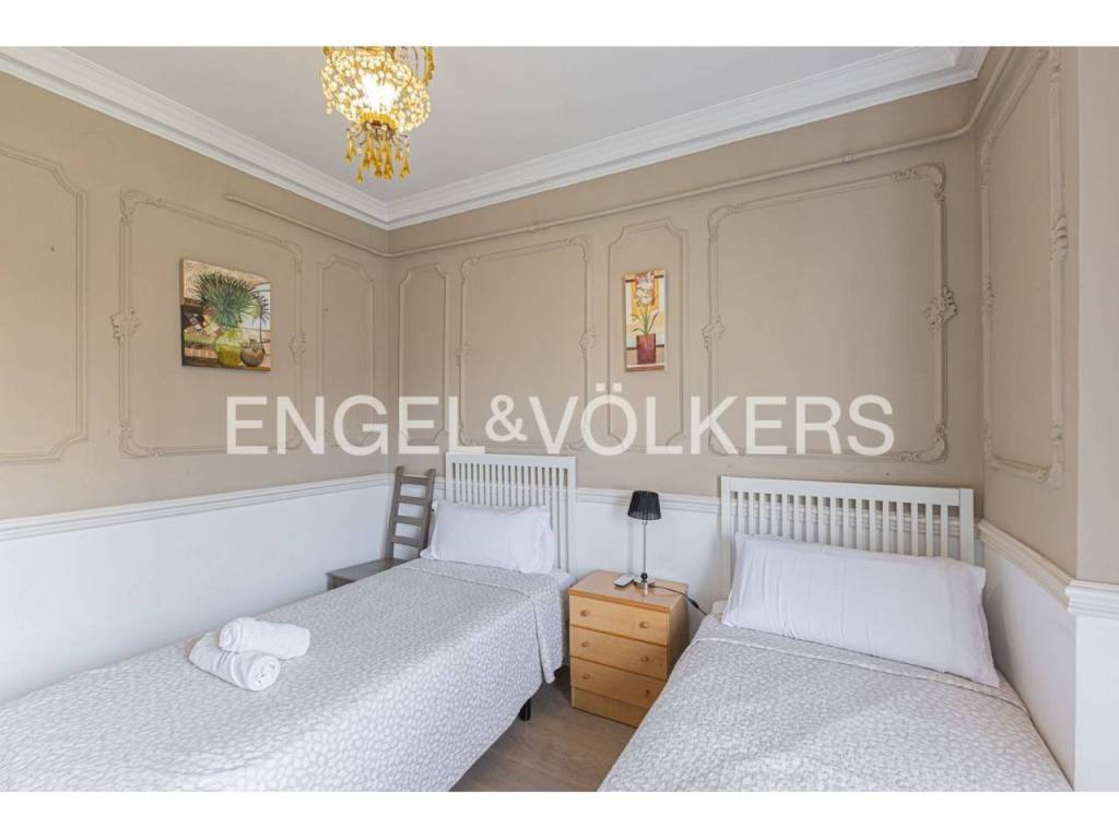 Exclusivo piso con licencia turística y alta rentabilidad, decorado con una cuidada combinación de estilo clásico y contemporáneo que se refleja en las molduras ornamentales en paredes y techos, elegantes lámparas tipo araña, mobiliario de inspiración francesa y espejos con marcos decorativos que aportan sofisticación