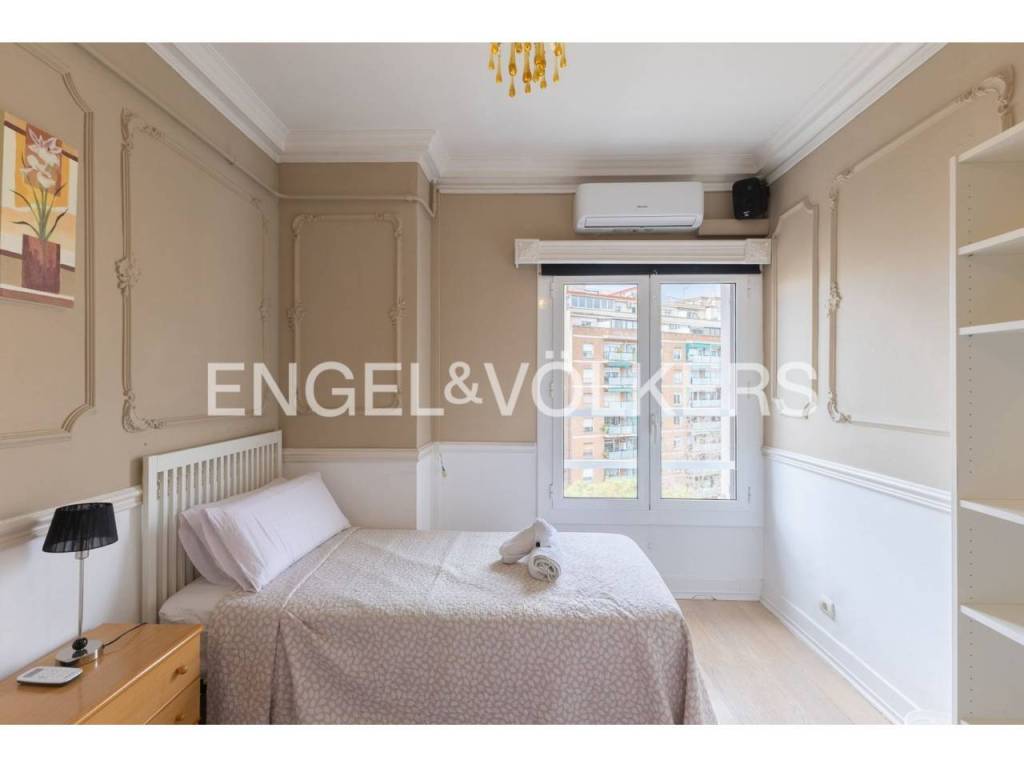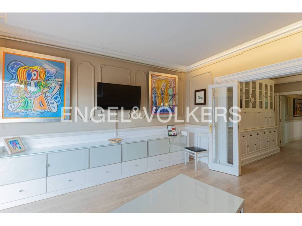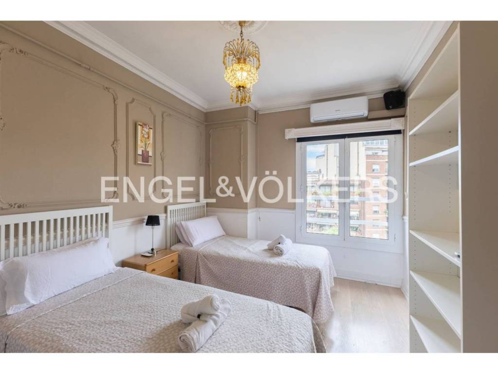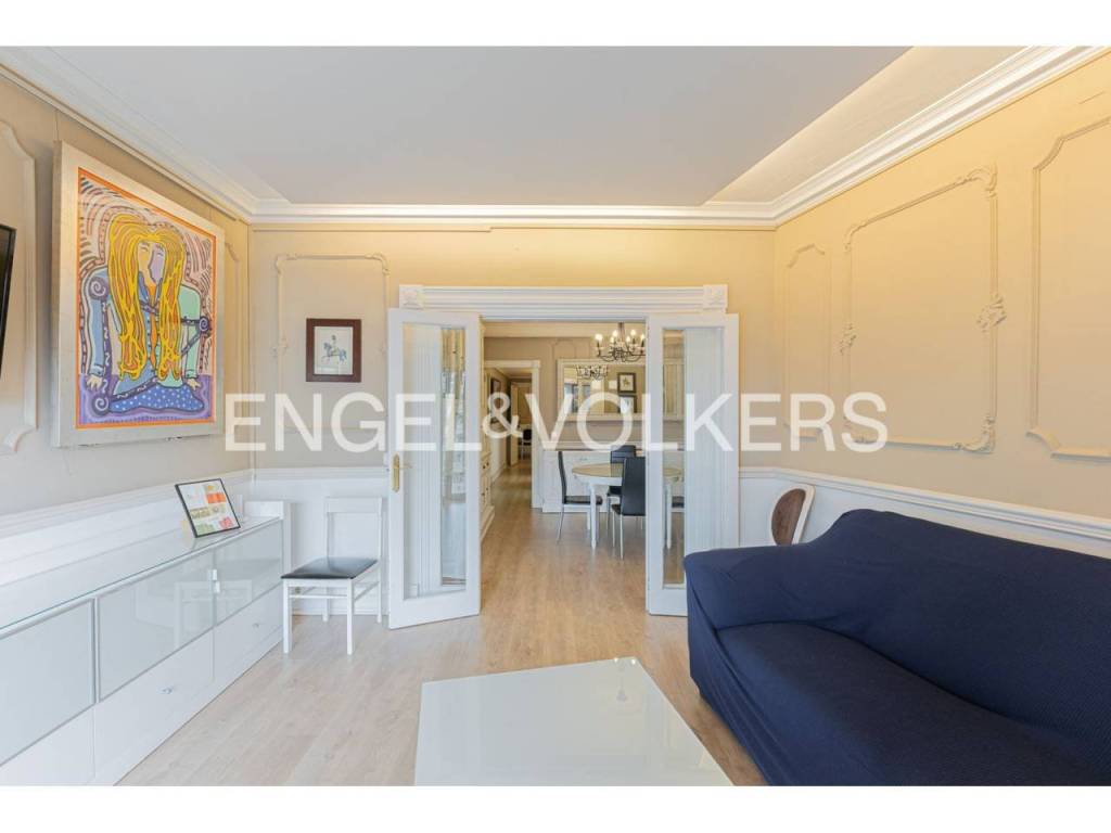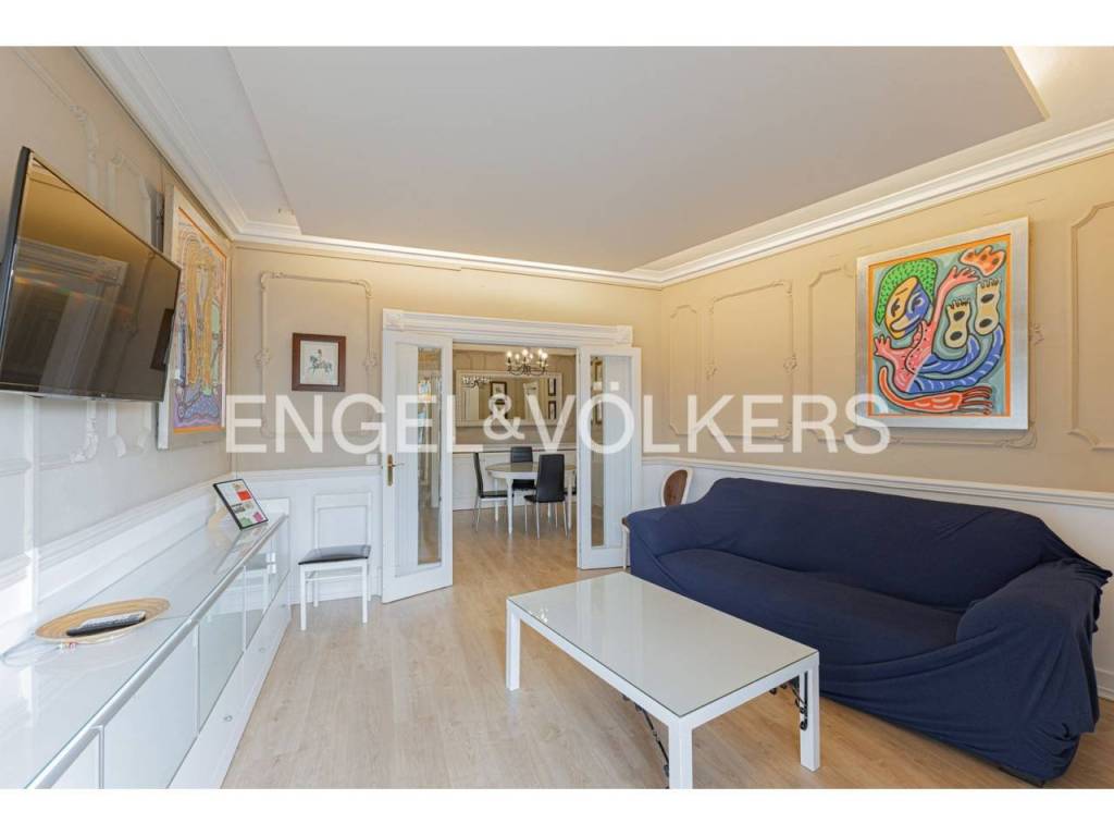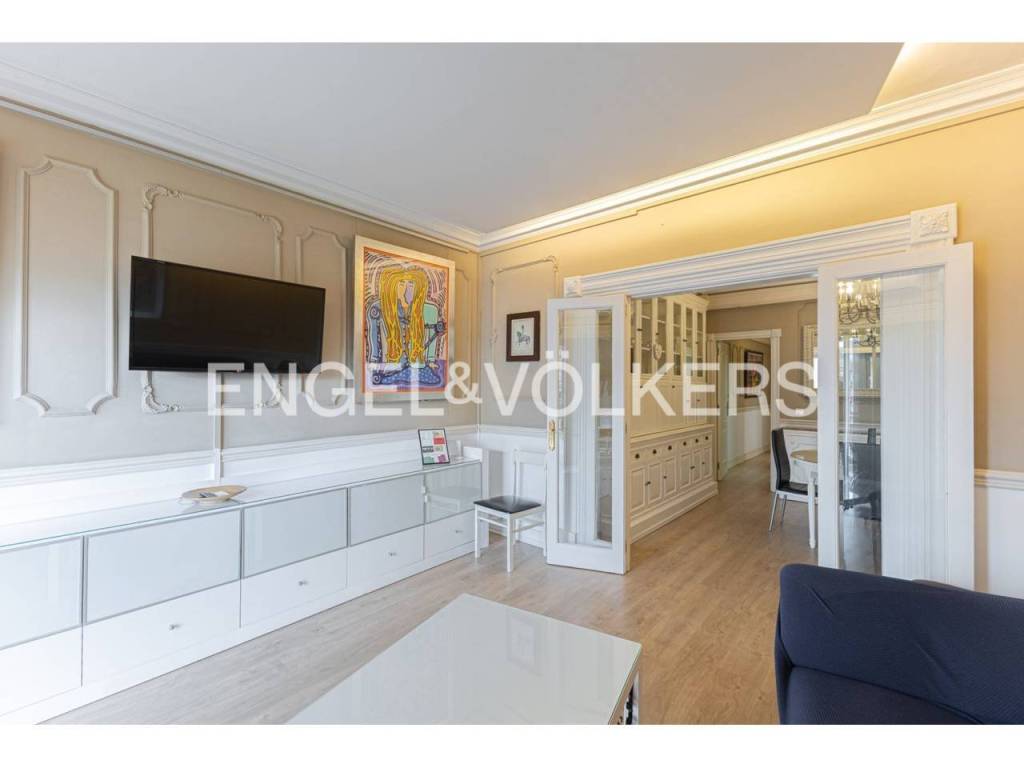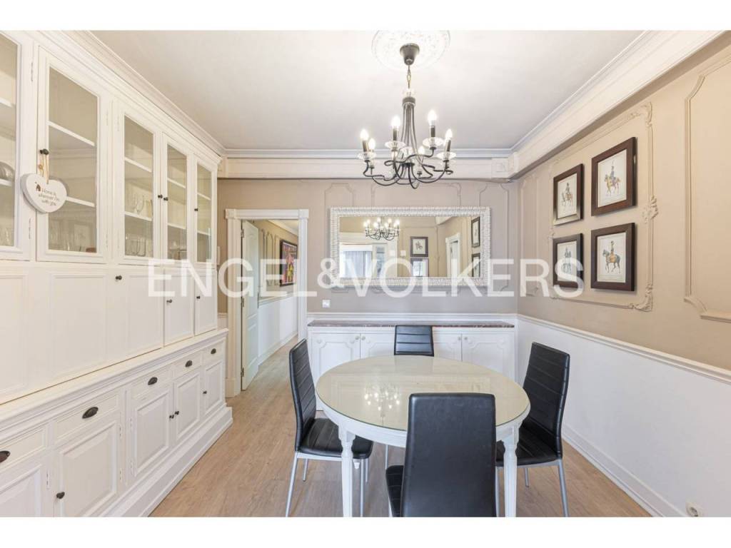 Exclusivo piso con licencia turística y alta rentabilidad, decorado con una cuidada combinación de estilo clásico y contemporáneo que se refleja en las molduras ornamentales en paredes y techos, elegantes lámparas tipo araña, mobiliario de inspiración francesa y espejos con marcos decorativos que aportan sofisticación