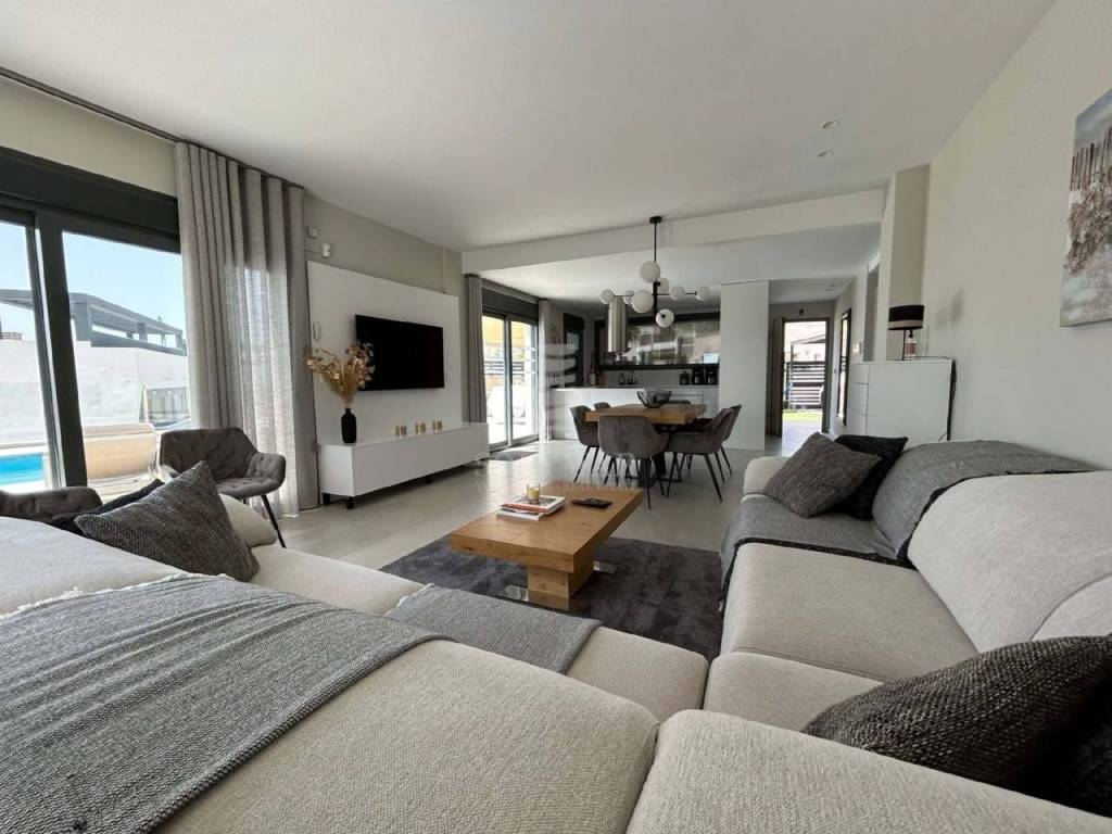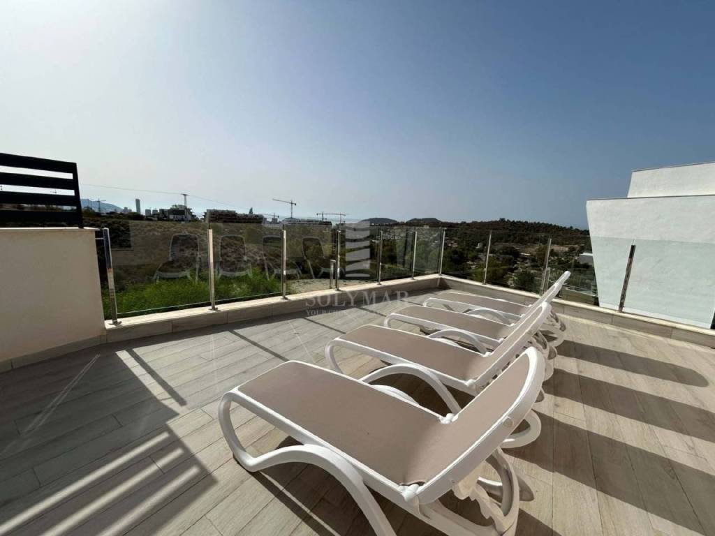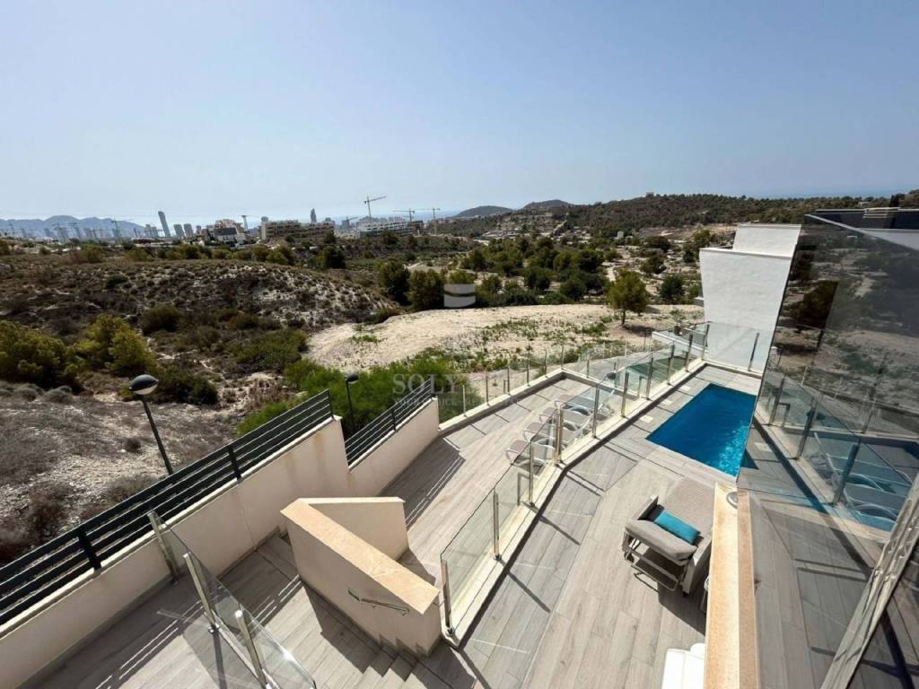 5 Amplios Dormitorios: Espacios diseñados para el confort y la privacidad de toda la familia. 4 Baños Modernos: Equipados con acabados de alta calidad para una experiencia de lujo. Cocina Independiente: Totalmente equipada con electrodomésticos de última generación y una elegante barra de desayuno. Salón Luminoso: Amplio y acogedor, con grandes ventanales que ofrecen vistas panorámicas al mar Mediterráneo. Terraza Privada: Perfecta para disfrutar de impresionantes atardeceres y momentos de relax. Jardín y Piscina: Espacios exteriores ideales para disfrutar del clima mediterráneo y organizar reuniones con amigos y familiares. Ubicación Inmejorable: Situada en una zona tranquila y residencial, esta villa está a solo unos minutos en coche de las playas de Benidorm, así como de restaurantes, tiendas y servicios locales. Disfruta de la combinación perfecta entre la serenidad de la naturaleza y la vibrante vida costera.