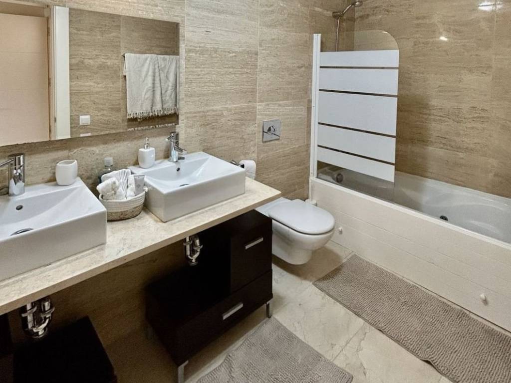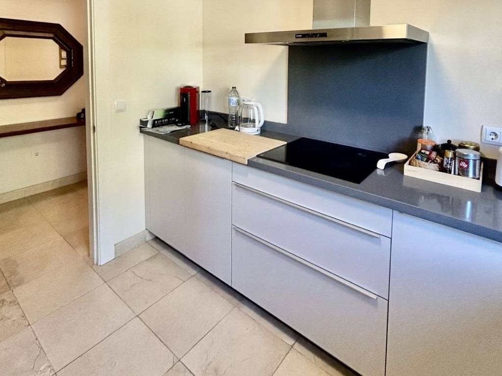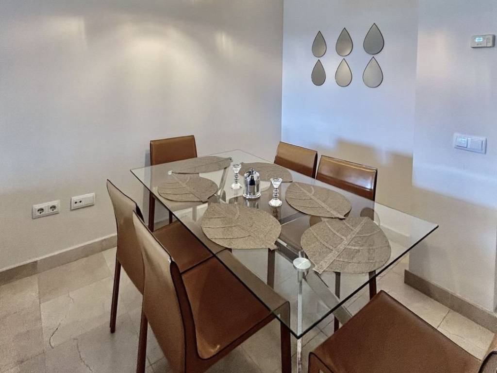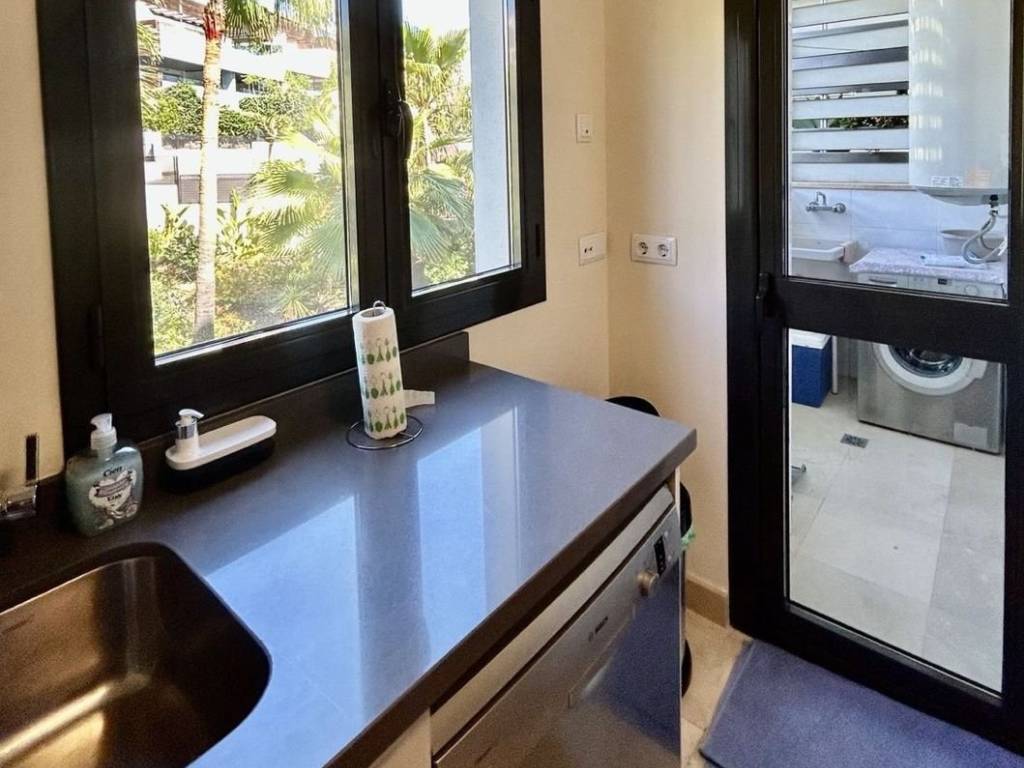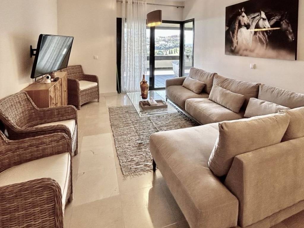 Beautiful apartment for sale in Los Flamingos boasting open sea, golf and lake views. The apartment consists of a living and dining area that go out to a spacious south facing terrace overlooking Villa Padierna, the sea and mountain. The kitchen is fully equipped plus a laundry room. Two bedrooms with built-in wardrobes and two bathrooms, one en-suite. The apartment is sold furnished and comes with underground parking and storage. The complex is gated and very well maintained and has 3 swimming pools settled in a beautiful tropical garden and a putting green as well as concierge service