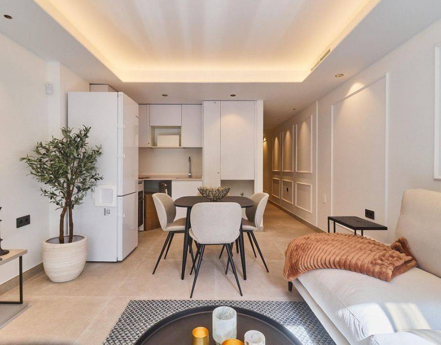 Modern 2-bedroom, 2-bathroom apartment located in the Edificio Centro, right next to the iconic Plaza de la Constitución, the heart of Fuengirola. The newly built Edificio Centro comprises apartments, offices, and a commercial space, all constructed with high-quality materials from prestigious brands such as Cortizo and Cerámicas Pamesa, and featuring meticulous, top-tier finishes. The apartment is delivered move-in ready, with a fully fitted kitchen equipped with high-end appliances and bathrooms featuring premium fixtures and large-format ceramic tiles. The layout has been designed to create bright and airy spaces, where every detail has been carefully considered, prioritizing functionality and comfort. The interior design was entrusted to the prestigious firm The White House Marbella. It includes complete furnishings, decor, and an advanced, energy-efficient lighting system that, combined, creates warm and inviting atmospheres that enhance the apartment's modern style. This package, priced at €20,000, adds significant value to the property. Just a few meters from the apartment, without needing a car, you'll find: 50m: Plaza de la Constitución, secure public parking with long-term passes, shops, services, and leisure activities. 200m: Commuter rail station and taxi and bus stop. 200m: Fuengirola Town Hall. 350m: One of the best Blue Flag beaches on the Costa del Sol. Málaga International Airport is 25 minutes away with a direct train connection. Marbella is 30 minutes away by car or bus. Fuengirola is a popular tourist destination on the Costa del Sol (Málaga), known for its extensive sandy beaches, warm climate, and multicultural atmosphere, with a rich Phoenician and Roman history evidenced by Sohail Castle and archaeological sites such as the Torreblanca Baths. It is a predominantly tourist town with a wide range of leisure activities, restaurants, and services, and a large foreign population, located within the Western Costa del Sol region. This is undoubtedly a significant investment that will appreciate in value in the coming years thanks to its prime location