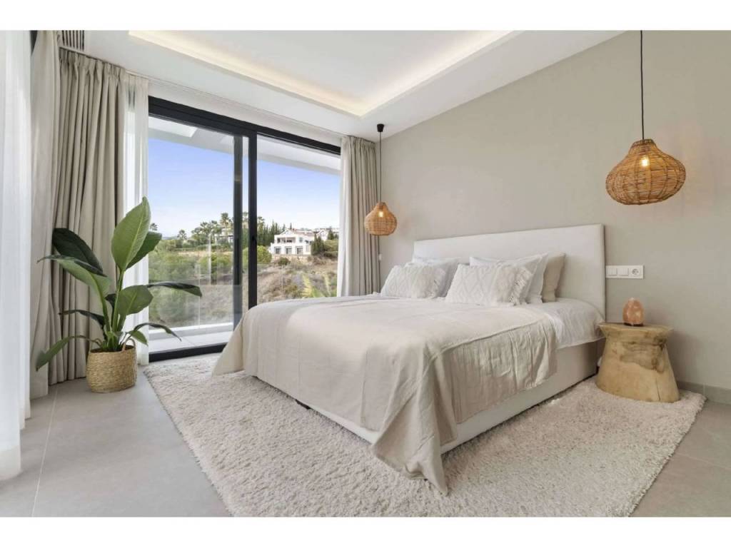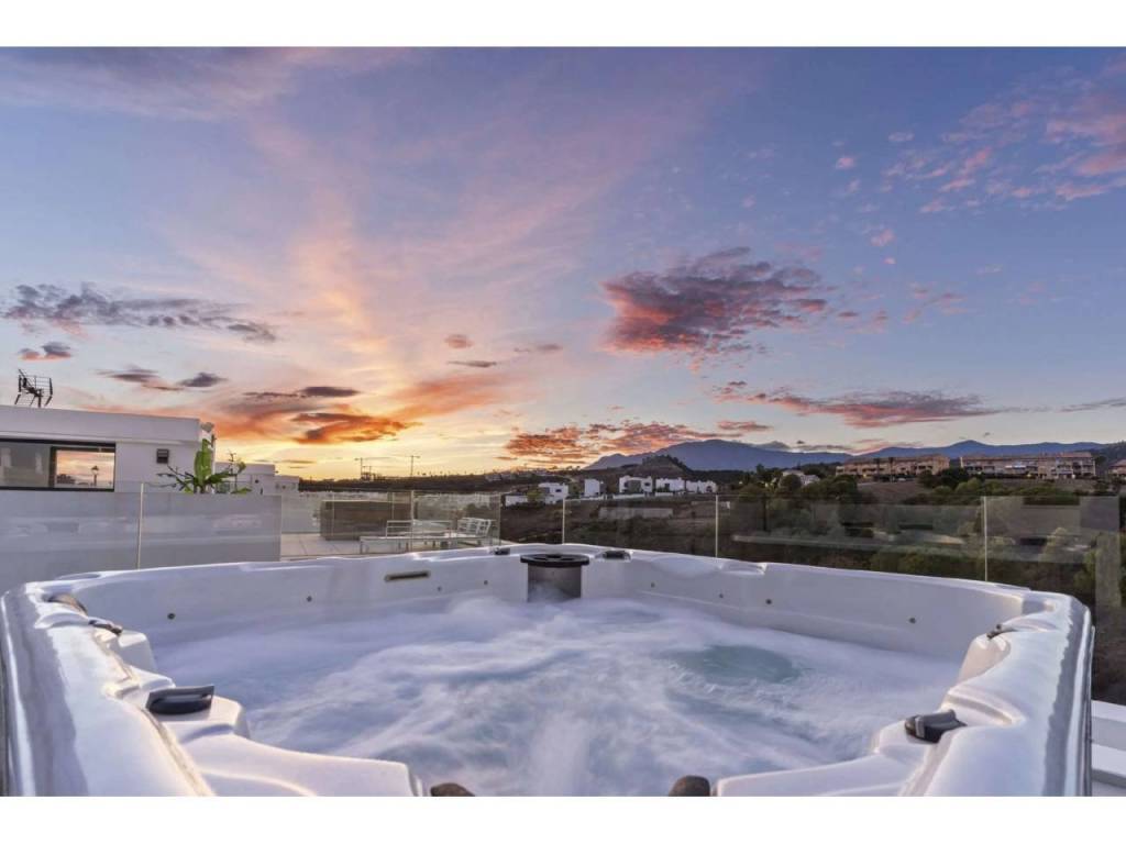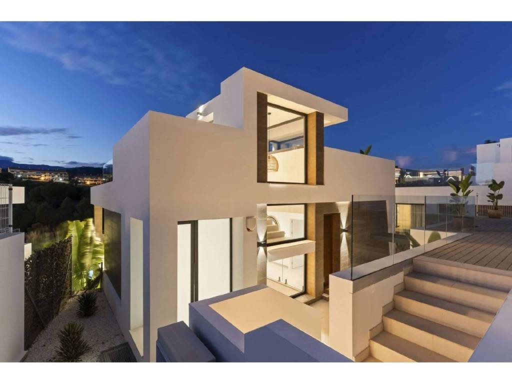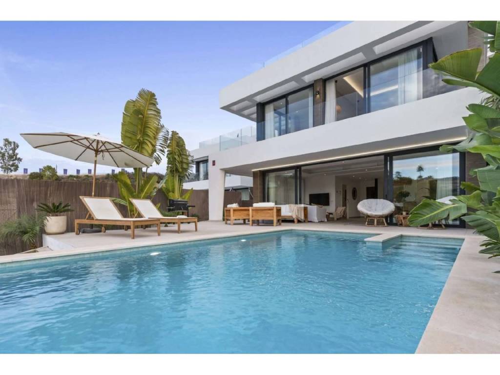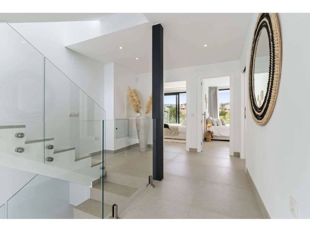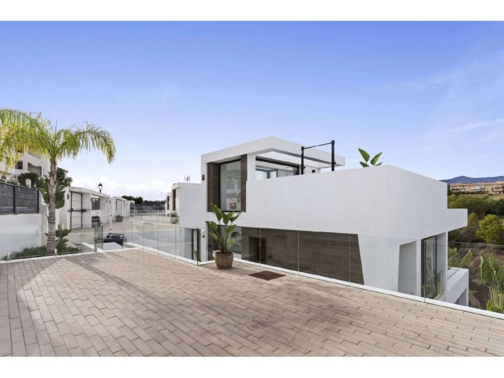 Bienvenido a esta villa moderna y contemporánea con orientación oeste ubicada en la Nueva Milla de Oro con vistas a la montaña y al golf. La villa ha sido diseñada combinando arquitectura contemporánea con interiores modernos y un diseño abierto para disfrutar de la vida interior y exterior. Esta villa tiene cuatro niveles distribuidos de la siguiente manera: Planta principal: sala de estar y cocina de planta abierta, 1 dormitorio, 1 baño Primera planta: 3 dormitorios con baño Terraza en la azotea: gimnasio al aire libre, jacuzzi Sótano: 2 dormitorios, 1 baño, trastero, sala multimedia .