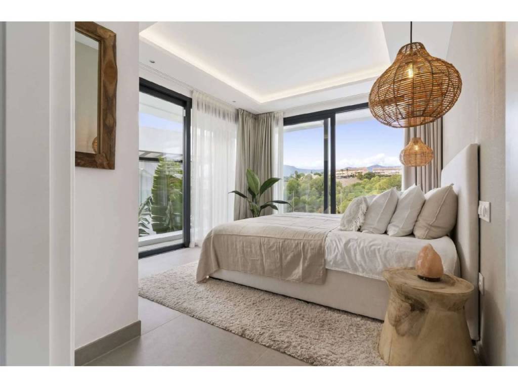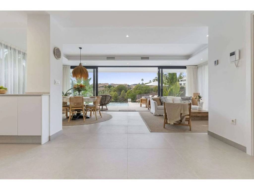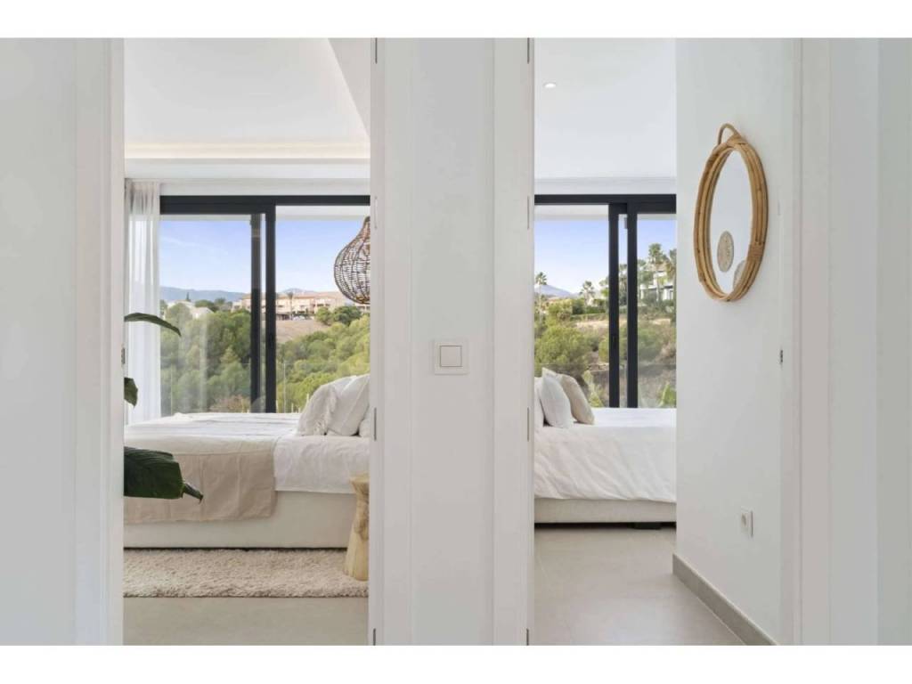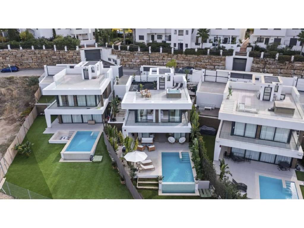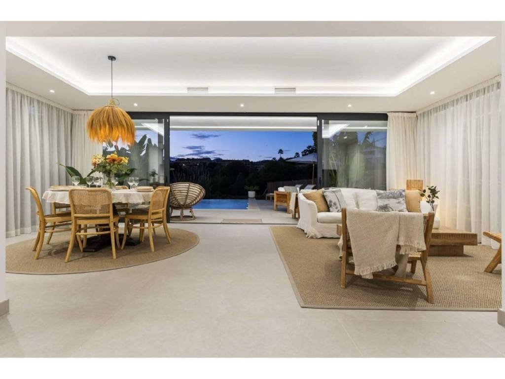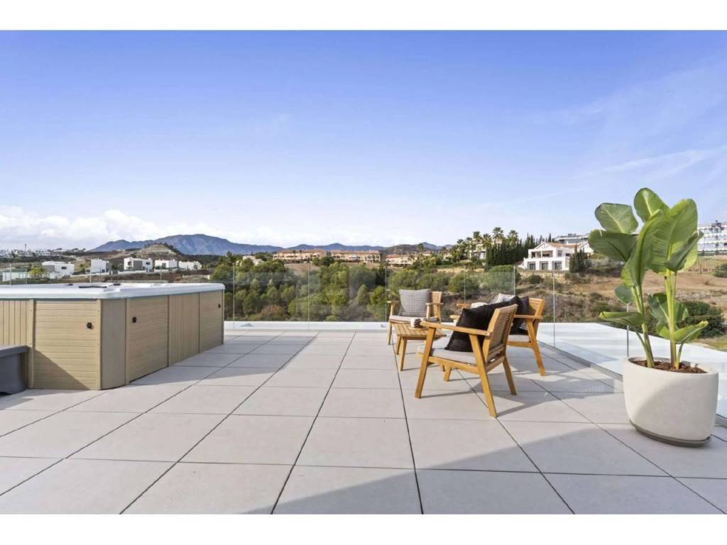 Bienvenido a esta villa moderna y contemporánea con orientación oeste ubicada en la Nueva Milla de Oro con vistas a la montaña y al golf. La villa ha sido diseñada combinando arquitectura contemporánea con interiores modernos y un diseño abierto para disfrutar de la vida interior y exterior. Esta villa tiene cuatro niveles distribuidos de la siguiente manera: Planta principal: sala de estar y cocina de planta abierta, 1 dormitorio, 1 baño Primera planta: 3 dormitorios con baño Terraza en la azotea: gimnasio al aire libre, jacuzzi Sótano: 2 dormitorios, 1 baño, trastero, sala multimedia .