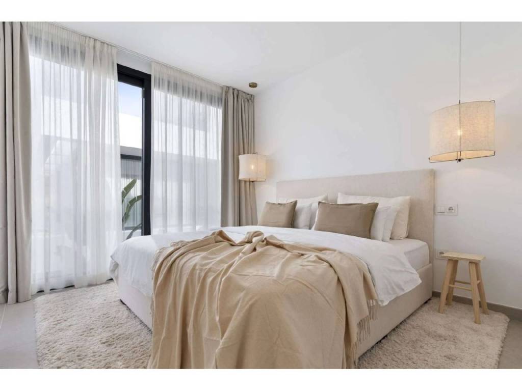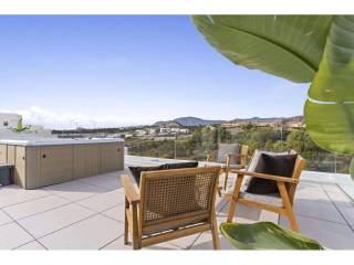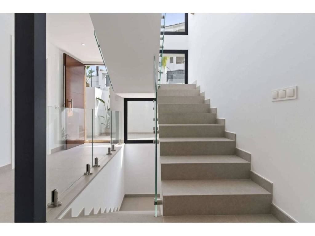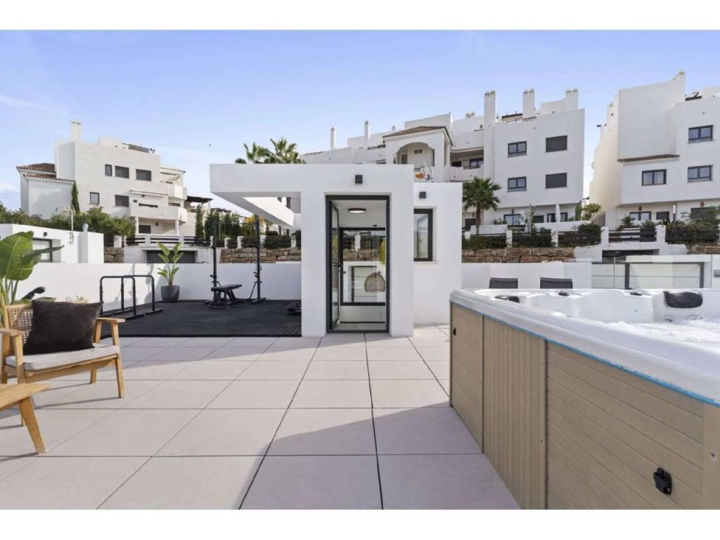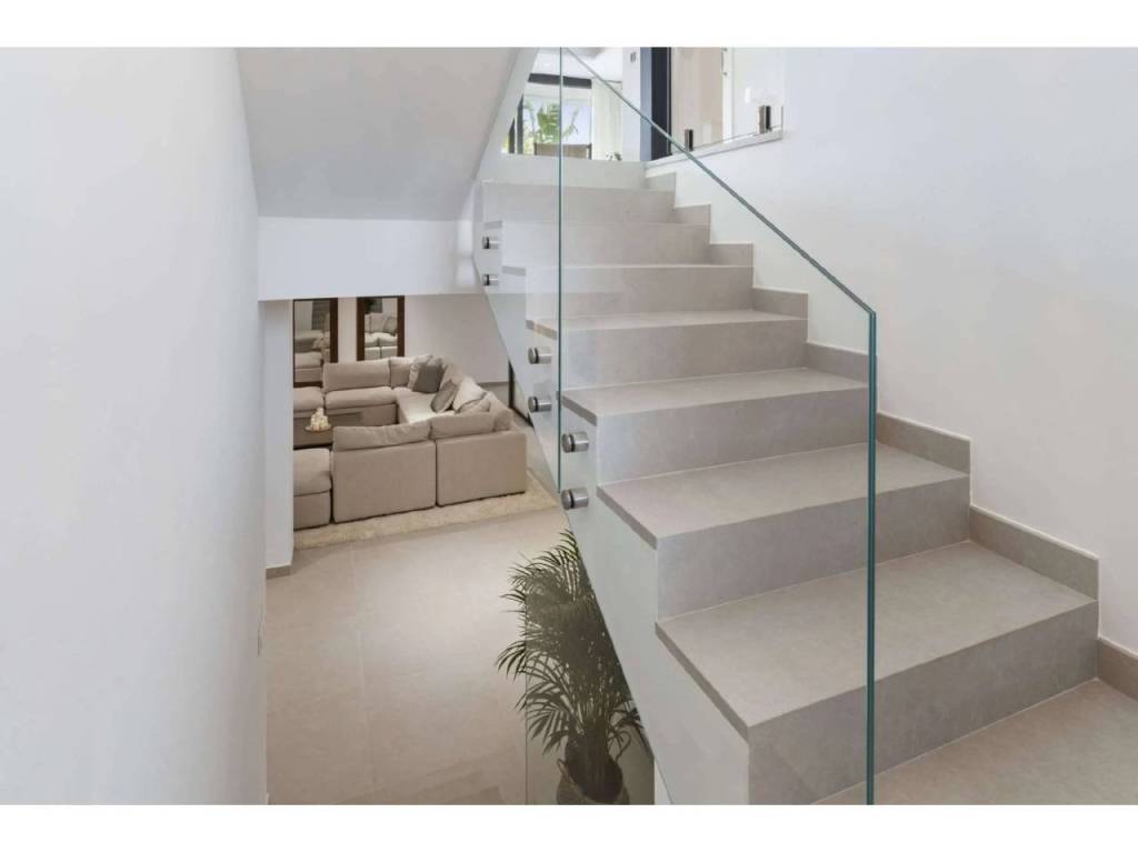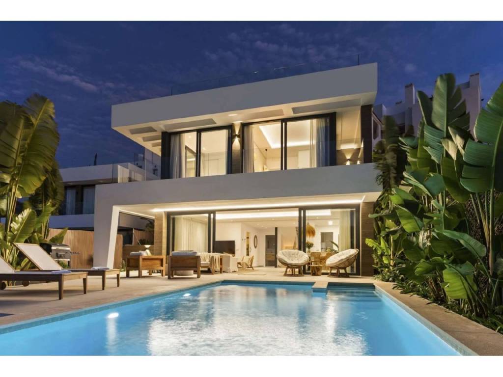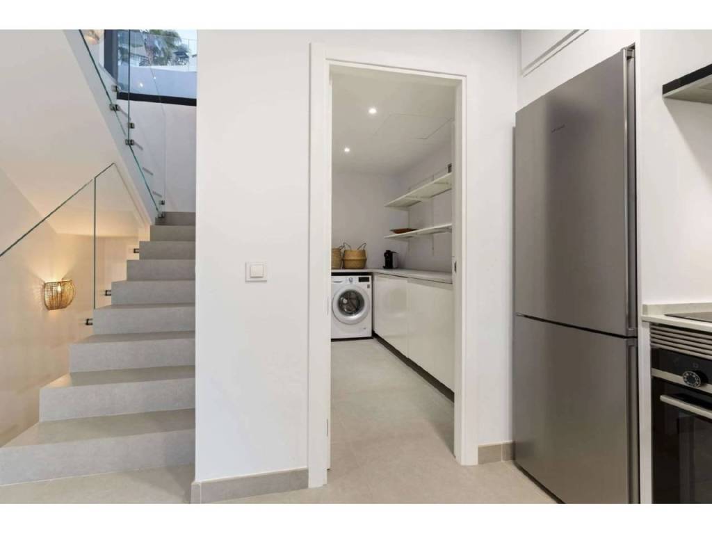 Bienvenido a esta villa moderna y contemporánea con orientación oeste ubicada en la Nueva Milla de Oro con vistas a la montaña y al golf. La villa ha sido diseñada combinando arquitectura contemporánea con interiores modernos y un diseño abierto para disfrutar de la vida interior y exterior. Esta villa tiene cuatro niveles distribuidos de la siguiente manera: Planta principal: sala de estar y cocina de planta abierta, 1 dormitorio, 1 baño Primera planta: 3 dormitorios con baño Terraza en la azotea: gimnasio al aire libre, jacuzzi Sótano: 2 dormitorios, 1 baño, trastero, sala multimedia .