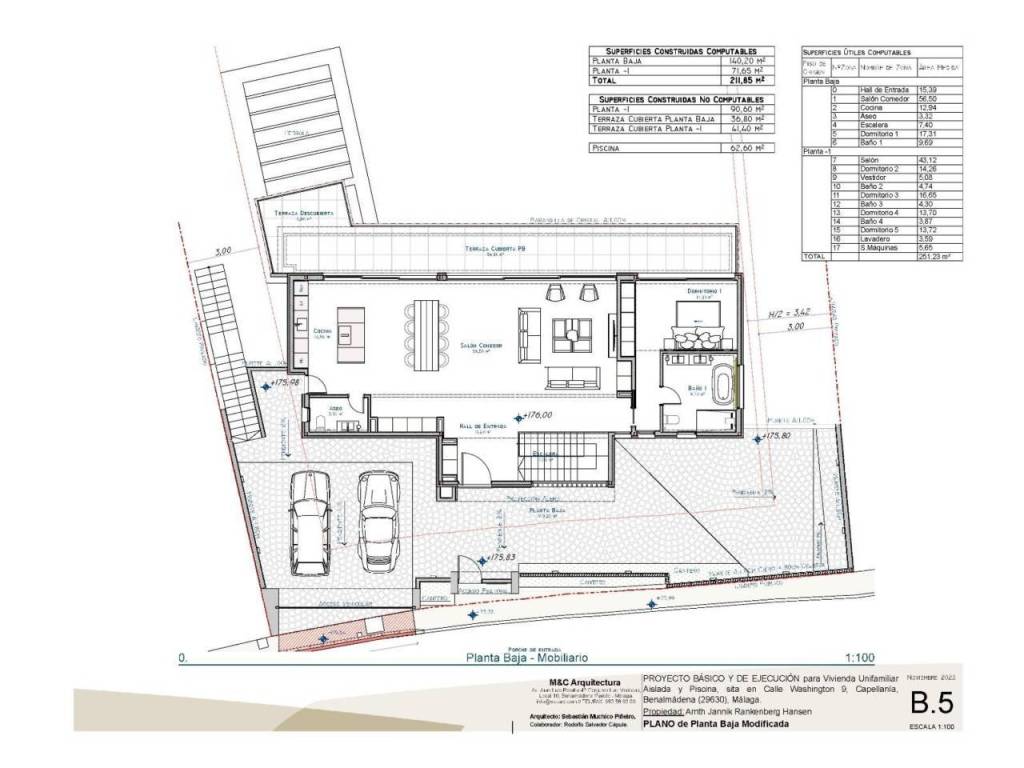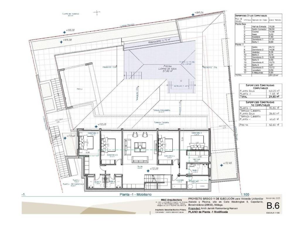 Distribuida sobre una parcela de 730 m², la villa contará con unos 300 m² construidos, diseñados con un enfoque contemporáneo, líneas limpias y materiales de máxima calidad. La vivienda se compone de cinco amplios dormitorios, todos con acceso directo a terrazas privadas, cuatro elegantes baños, dos salones (uno en cada planta) y una cocina de concepto abierto perfectamente integrada al espacio de estar, desde donde se disfrutan vistas ininterrumpidas al mar Mediterráneo.
