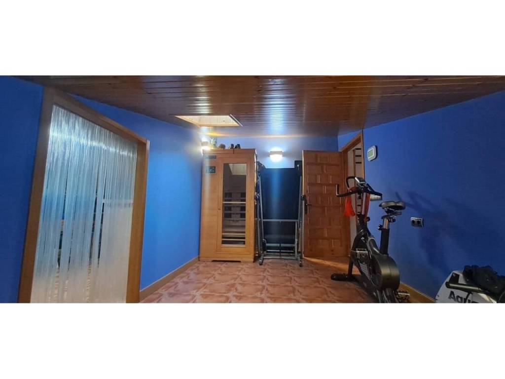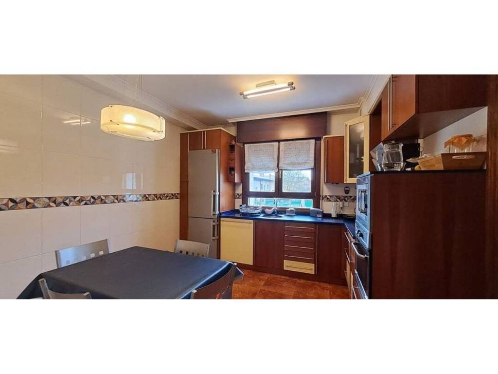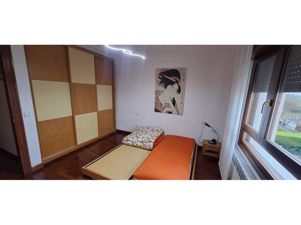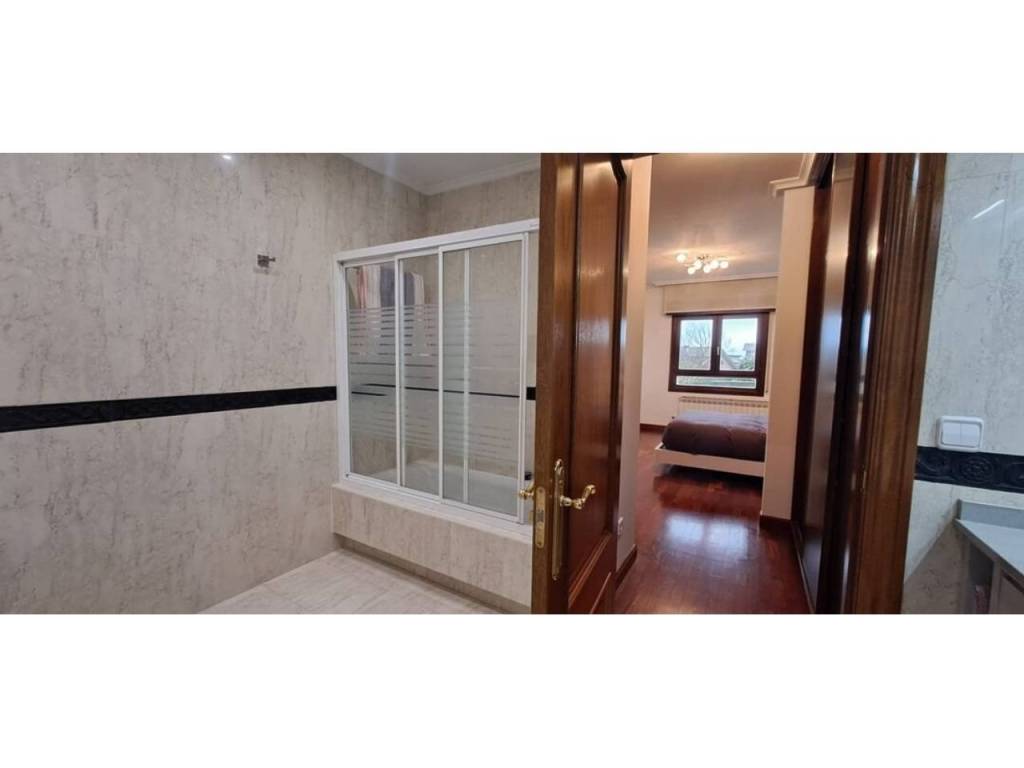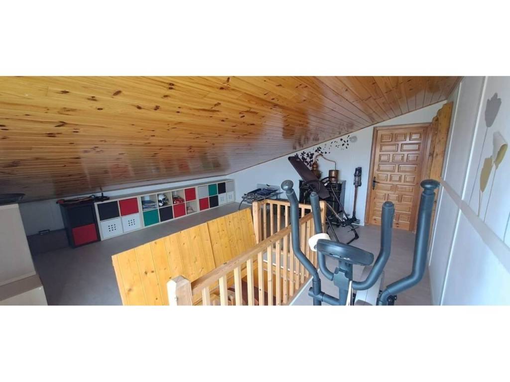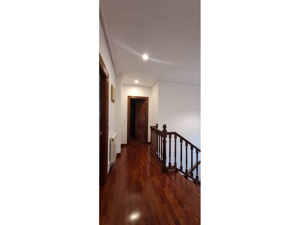 Para acabar tenemos el acceso al txoko, una zona en la que poder realizar comidas con familiares, amigos… Desde el mismo txoko podemos acceder a una entreplanta (bajocubiertas) en la que encontramos un gran espacio auxiliar con su luz natural gracias al gran ventanal con vistas al jardín; este espacio destinado a trastero, zona de lectura y gimnasio nos da mucho juego en la vivienda.