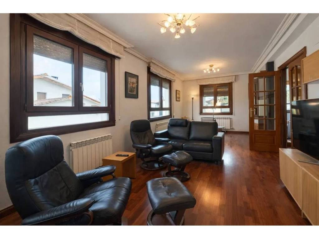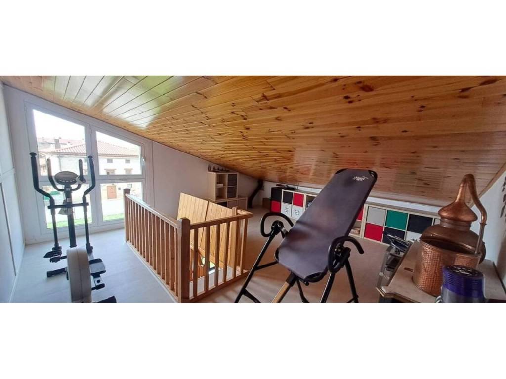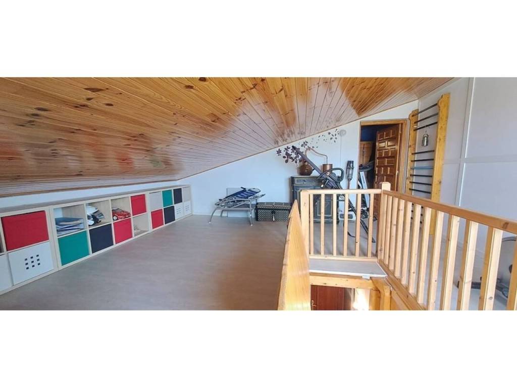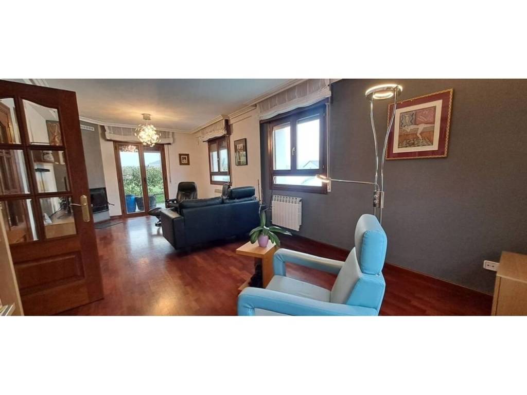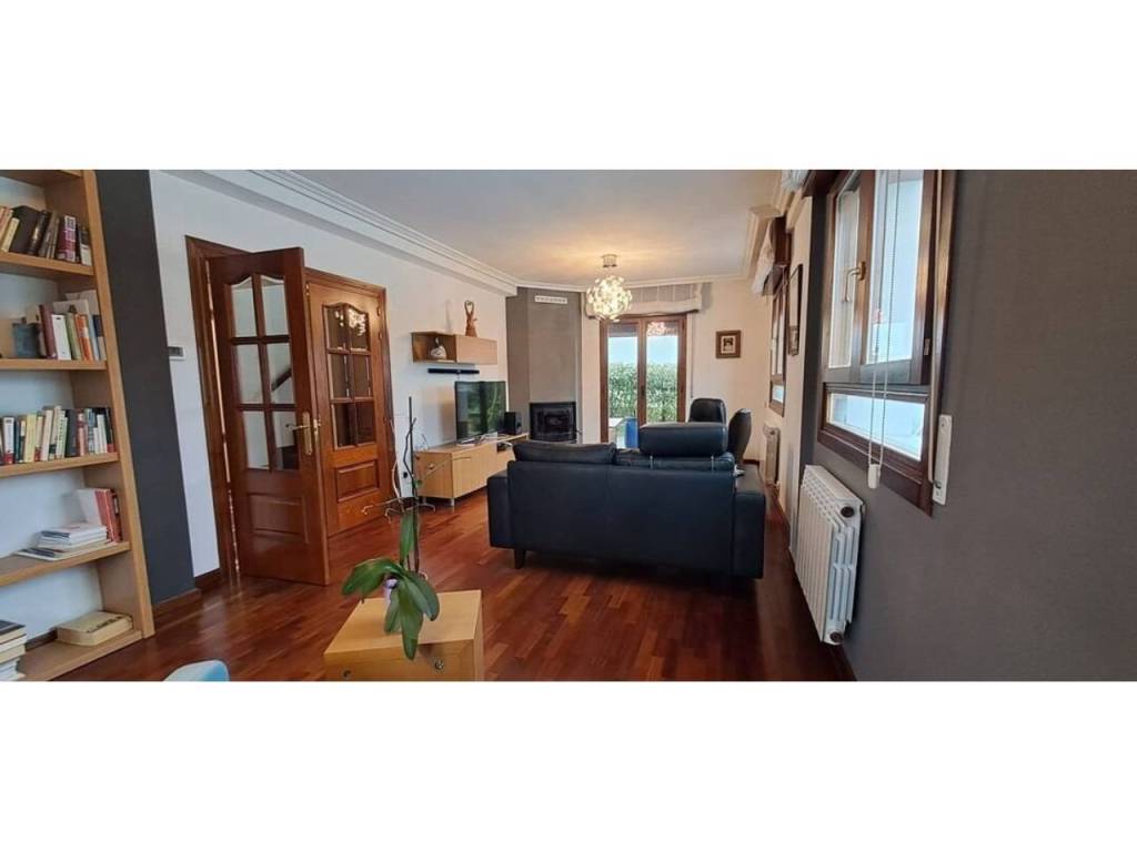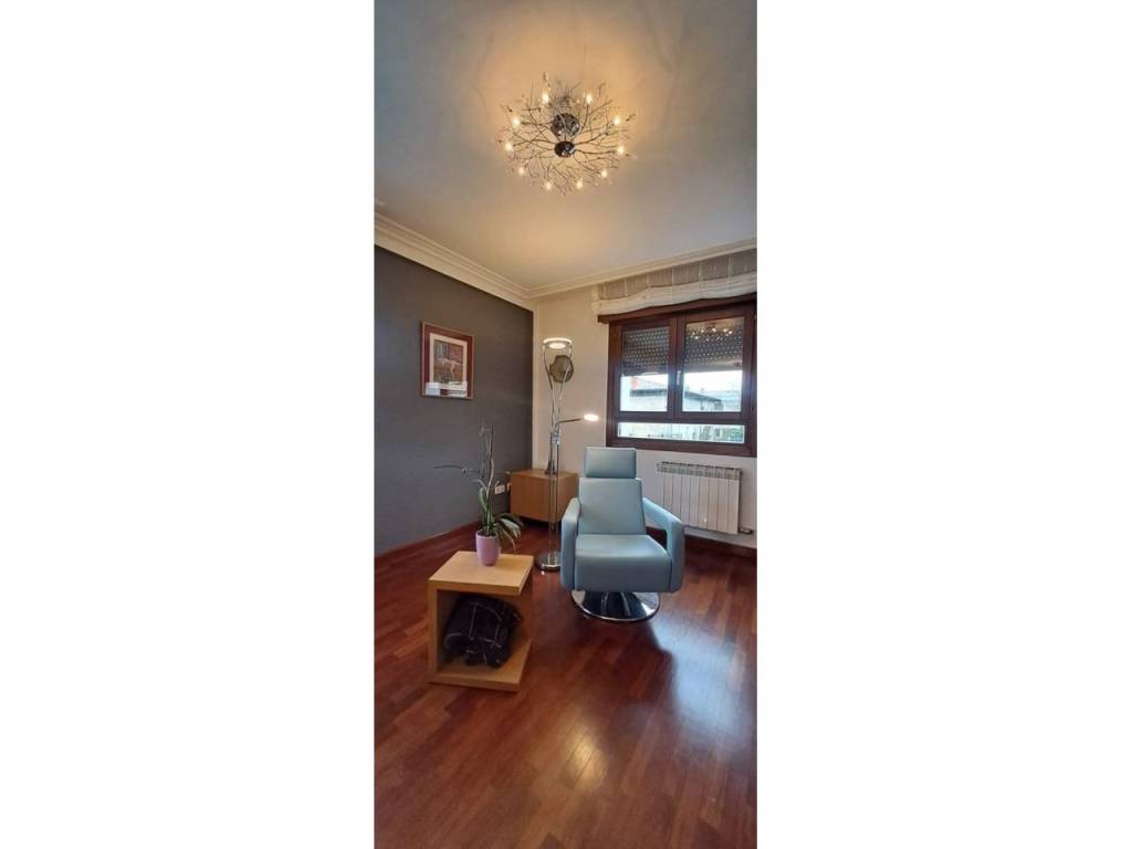 Para acabar tenemos el acceso al txoko, una zona en la que poder realizar comidas con familiares, amigos… Desde el mismo txoko podemos acceder a una entreplanta (bajocubiertas) en la que encontramos un gran espacio auxiliar con su luz natural gracias al gran ventanal con vistas al jardín; este espacio destinado a trastero, zona de lectura y gimnasio nos da mucho juego en la vivienda.