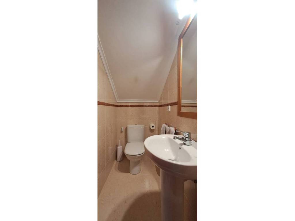 En el propio hall encontramos un aseo que da servicio a esta planta. En la misma planta encontramos un dormitorio perfecto para invitados o para quienes buscan comodidad evitando escaleras. El garaje, con acceso desde el propio hall, consta de 28 m² y con puerta automática, ofrece capacidad para dos coches, además de espacio exterior para aparcar hasta cuatro vehículos más.