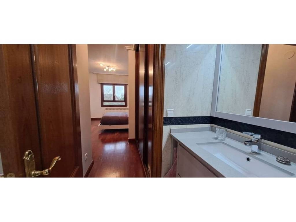 En la primera planta, encontramos otros tres dormitorios muy luminosos, todos ellos con armarios empotrados. La habitación principal es especialmente destacable: cuenta con un baño en suite con doble lavabo y bañera, un vestidor independiente y acceso a una terraza privada con vistas abiertas. Un segundo baño completo con ducha da servicio al resto de habitaciones.