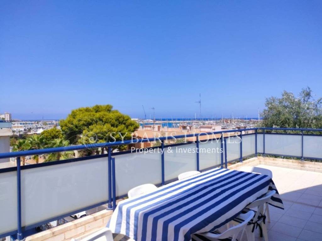 SYBARIS HOMES tiene en alquiler vacacional este hermoso ático dúplex, amplio y con 3 dormitorios, ideal para un máximo de 6 personas. Está ubicado en la privilegiada zona de Marineta Cassiana, a la entrada de Denia y cerca del Club Náutico. En sus alrededores dispone de todo lo necesario para una estancia cómoda, como bares, restaurantes, tiendas, supermercados, farmacias y paradas de autobús.