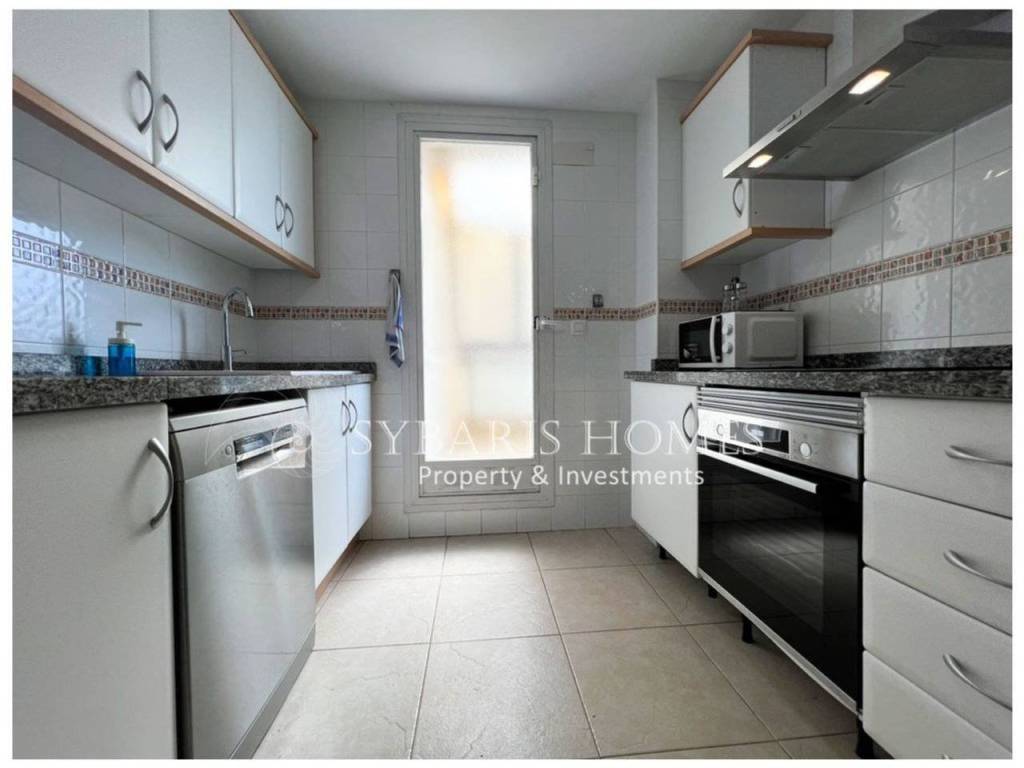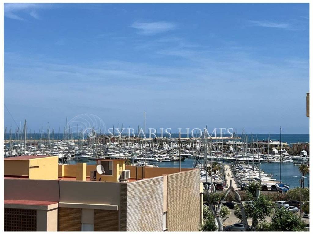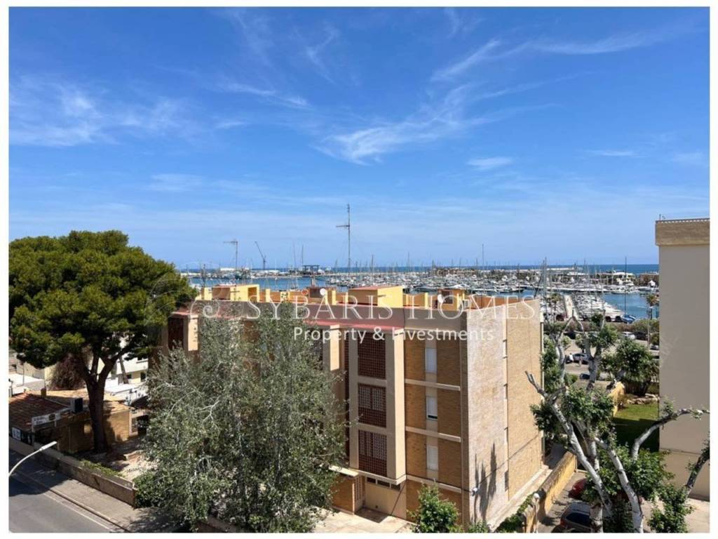 La vivienda está situada en la prestigiosa urbanización Sueños del Mar, frente al hotel Port Denia, y se distribuye en dos plantas. En la planta baja, cuenta con una luminosa cocina con acceso a una amplia terraza y un lavadero independiente. También hay un dormitorio doble con armario empotrado y acceso a la terraza, un baño con ducha y un salón-comedor muy acogedor y luminoso, que da a una terraza esquinera desde la cual se pueden disfrutar de preciosas vistas al mar. Además, incluye una plaza de garaje privada.