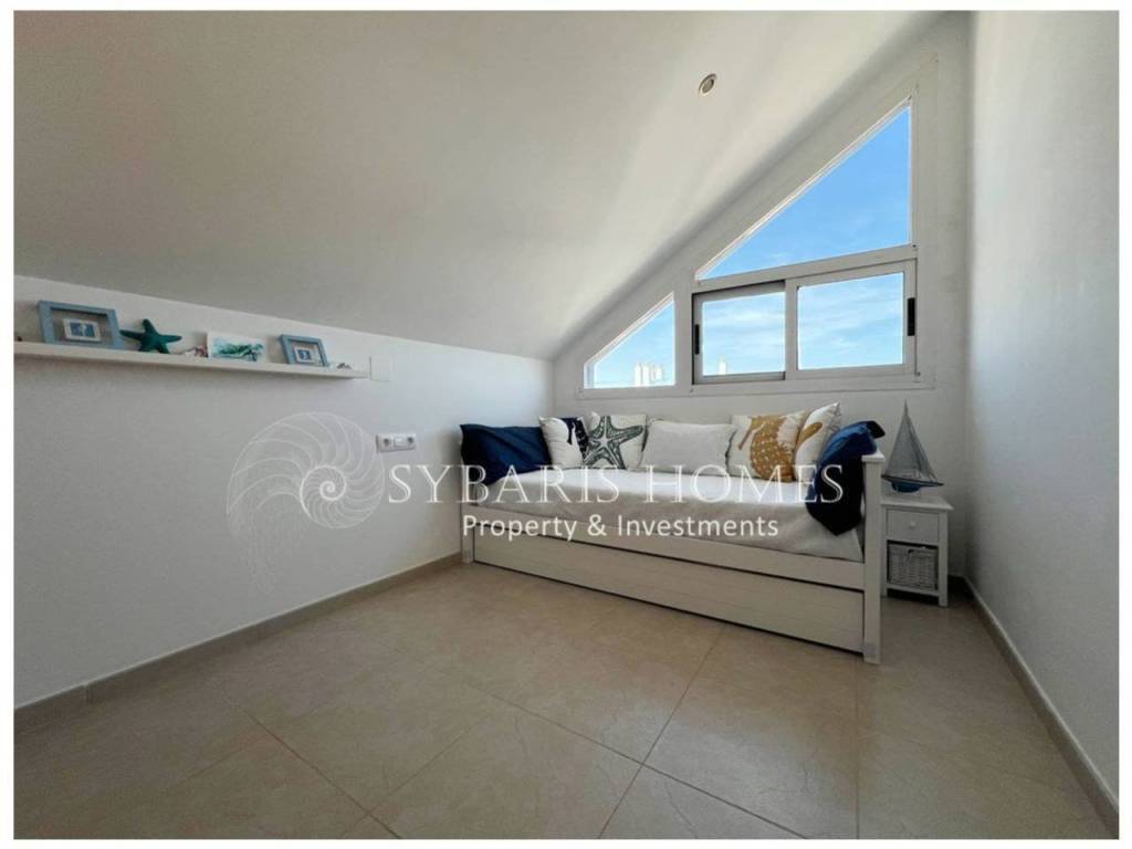 El acceso a la planta superior es a través de unas elegantes escaleras de mármol. En esta planta se encuentran dos dormitorios dobles con armarios empotrados, ambos con acceso a una terraza privada con maravillosas vistas al Club Náutico y al mar. También hay un segundo baño abuhardillado, muy luminoso, que da servicio a las habitaciones de esta planta. El ático está equipado con aire acondicionado por conductos, garantizando una estancia cómoda incluso en los meses más calurosos.