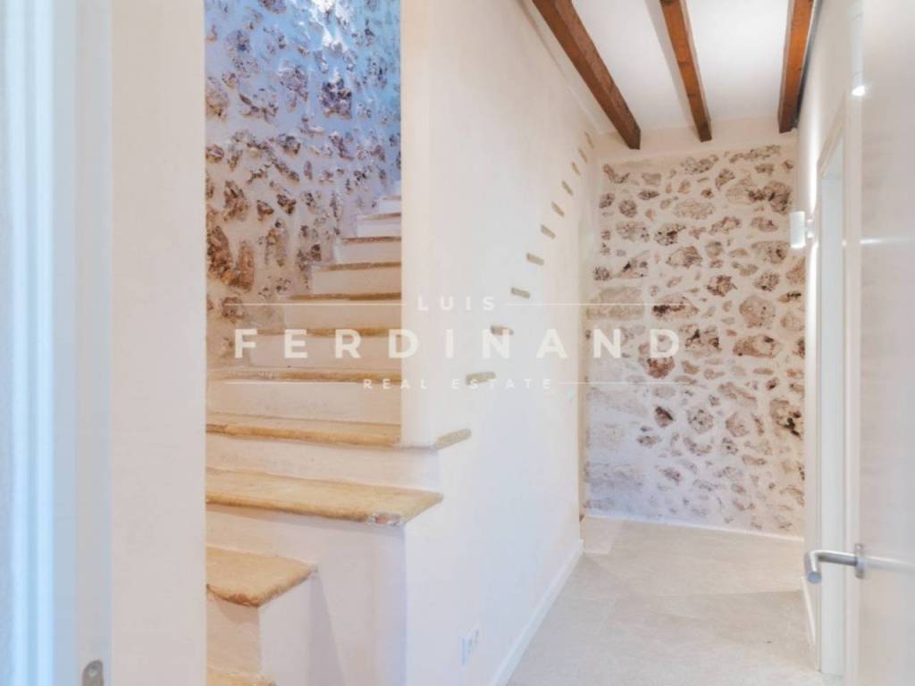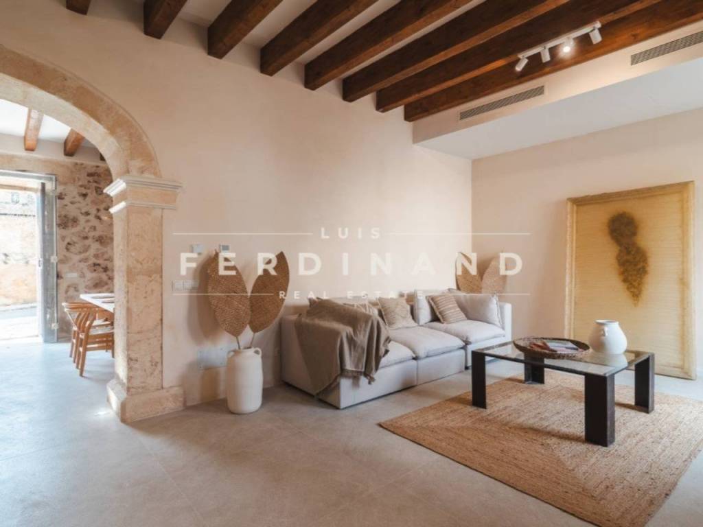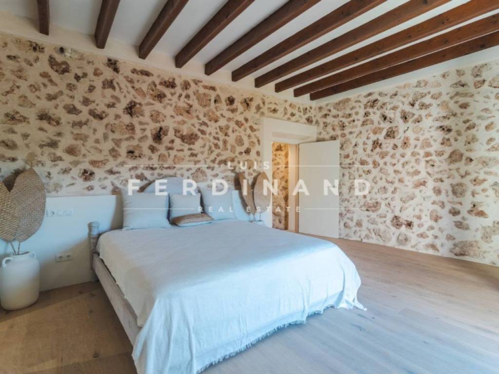 Hay lugares en Mallorca donde el reloj todavía funciona de otra manera y Pina es, sin duda, uno de ellos. En este pequeño rincón de Algaida, donde la vida sigue siendo sencilla y los vecinos aún se saludan por su nombre, se levanta esta casa señorial originaria de 1890. Es una propiedad que impone desde su fachada de piedra y que, tras una reforma meticulosa, ha sabido mantener esa presencia histórica con sus arcos antiguos y detalles en mármol integrando de forma invisible la tecnología más avanzada. Nada más cruzar el umbral, un gran hall de entrada presidido por un arco de mármol original guía el paso hacia un salón espacioso y una cocina que conectan directamente con el patio interior. Este espacio exterior, con su piscina privada, se convierte en un refugio de paz absoluta donde la privacidad es total.