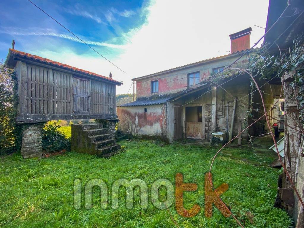 Se vende casa de 146 m2 en 2 plantas, para reforma en O Vao (Abegondo) Cuenta con 4 habitaciones, ademas de cocina y 2 baños completos. Casa de piedra de 1900, restaurada parcialmente en 1990. Ventanas de aluminio. Dispone de una parcela de casi 400m2 con varios galpones o almacenes y un horreo. Posibilidad de comprar una parcela de anexa de mas de 3000 m2. Todo situado a menos de 30 min de A Coruña en un entorno muy tranquilo.