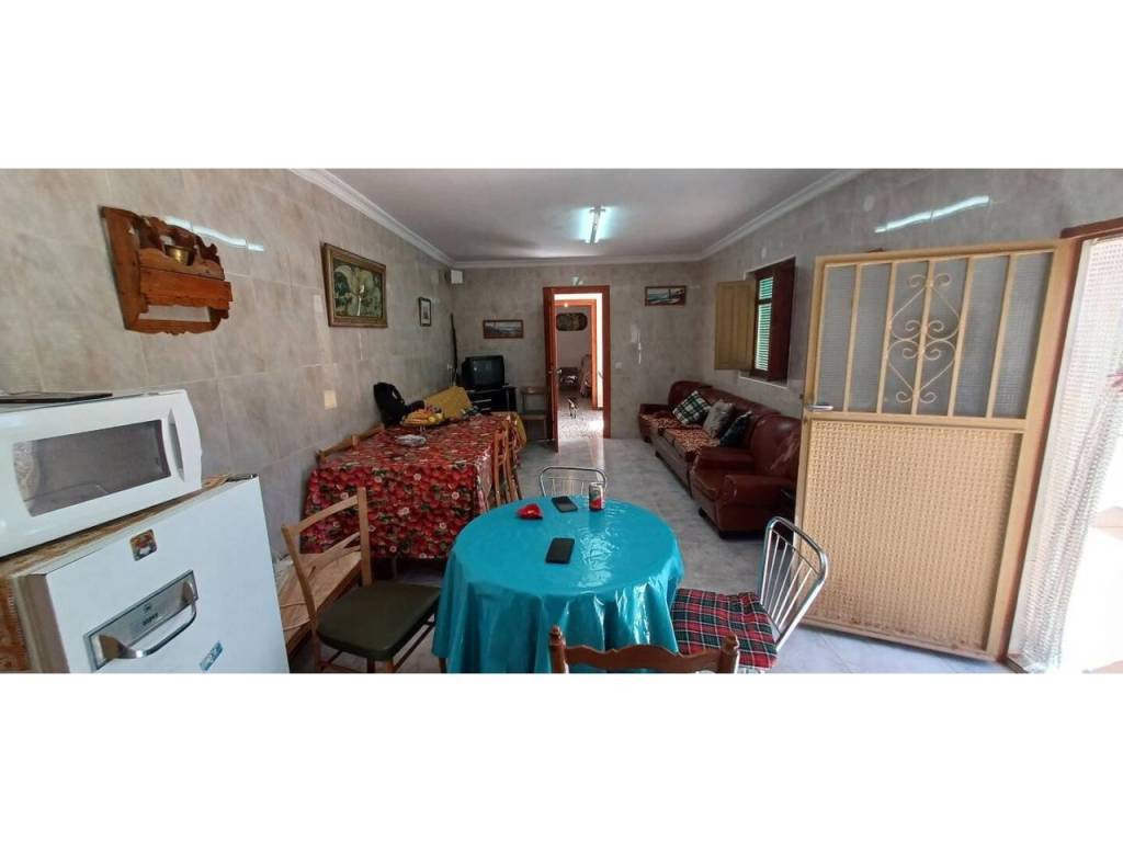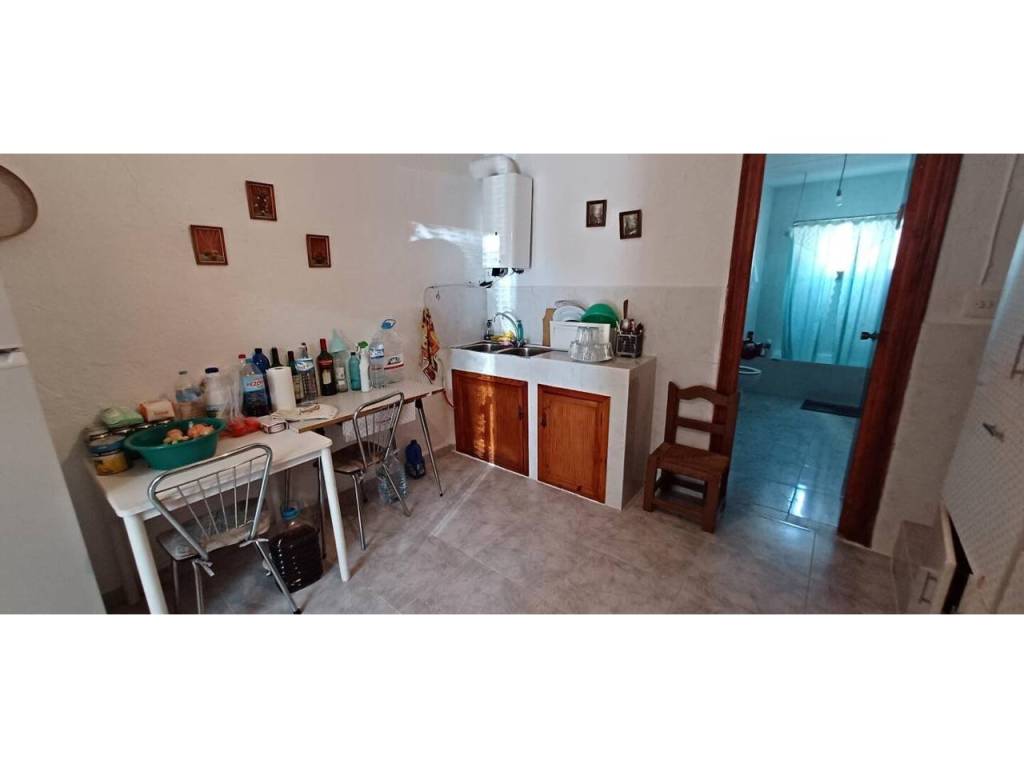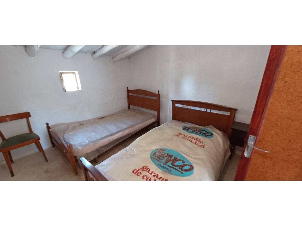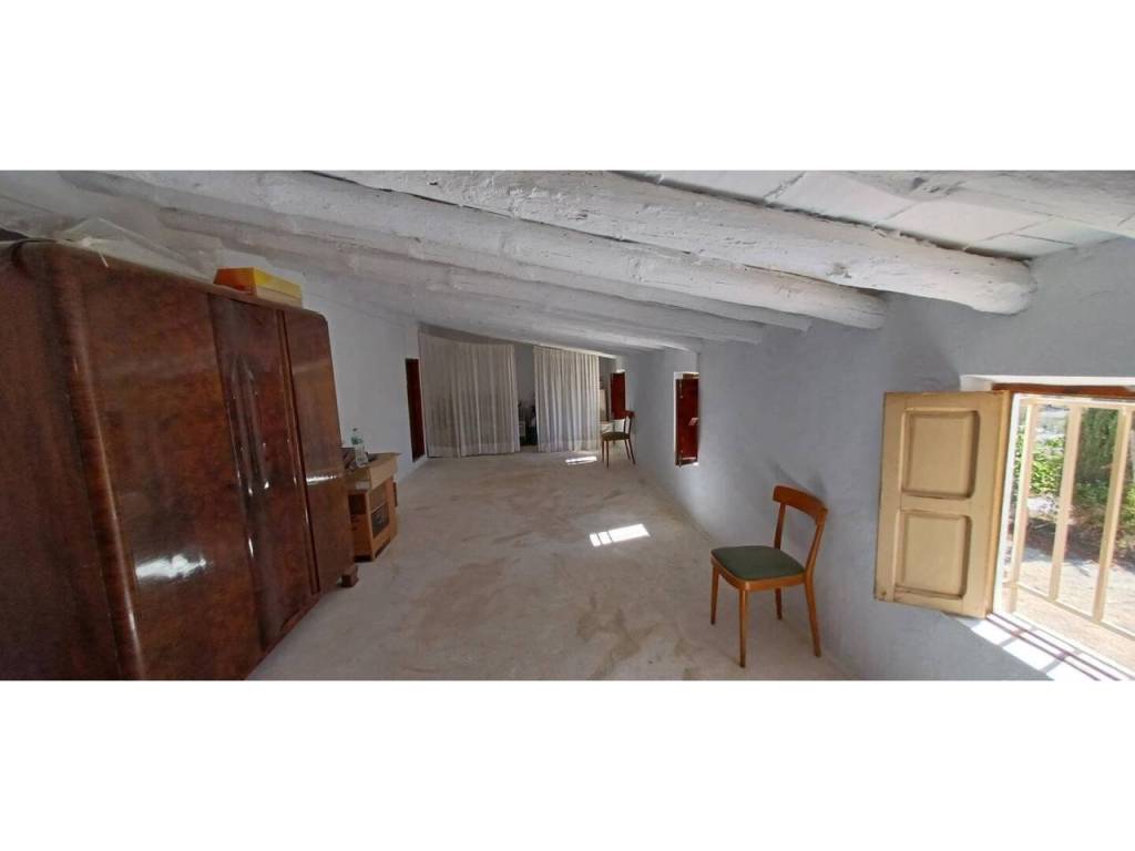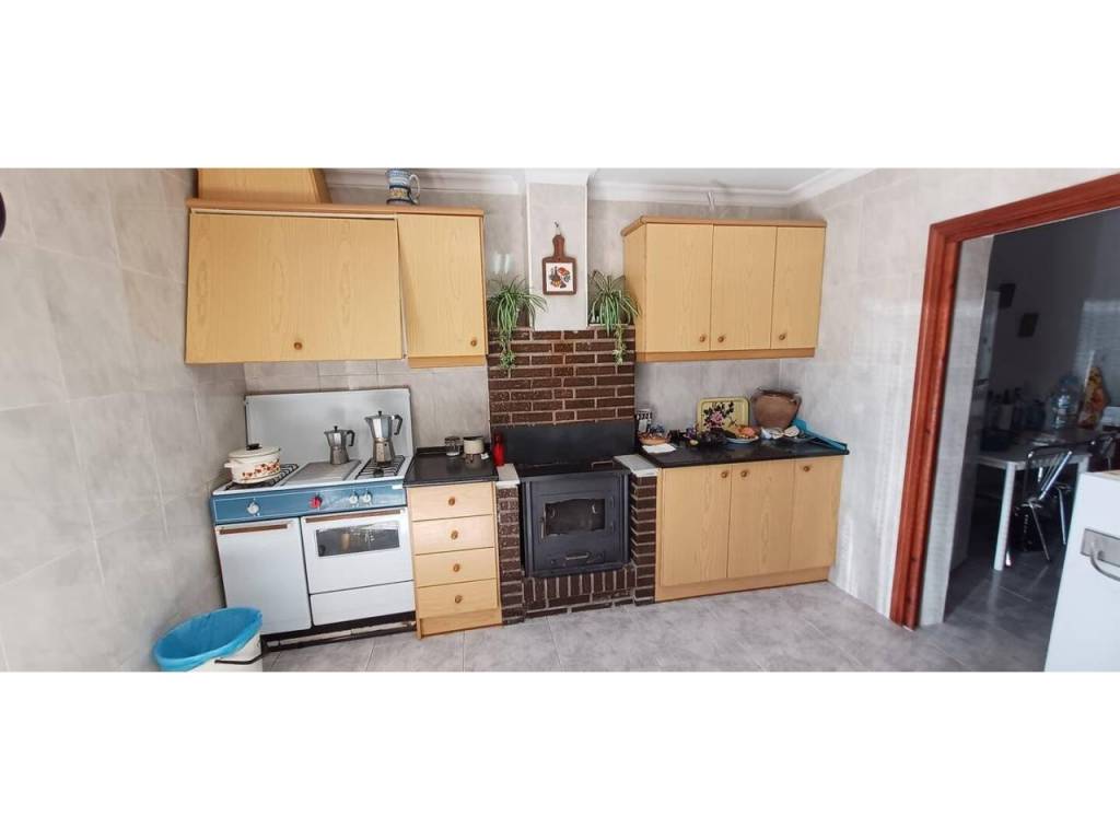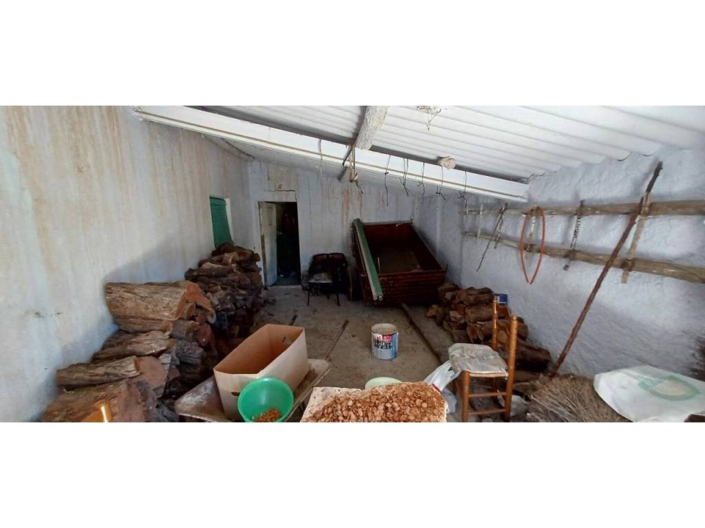 La planta baja cuenta con un amplio salón que se integra con una cocina amueblada de estilo antiguo, equipada con chimenea, además de tres dormitorios y un baño completo. En la primera planta, se encuentran dos dormitorios adicionales y una habitación amplia que puede adaptarse a diversas necesidades, como un dormitorio extra o un baño adicional. La flexibilidad de este diseño permite personalizar el espacio según las preferencias del propietario. La propiedad incluye un garaje de 24 m² y un almacén agrícola de 40 m², perfectos para almacenamiento o proyectos agrícolas.
