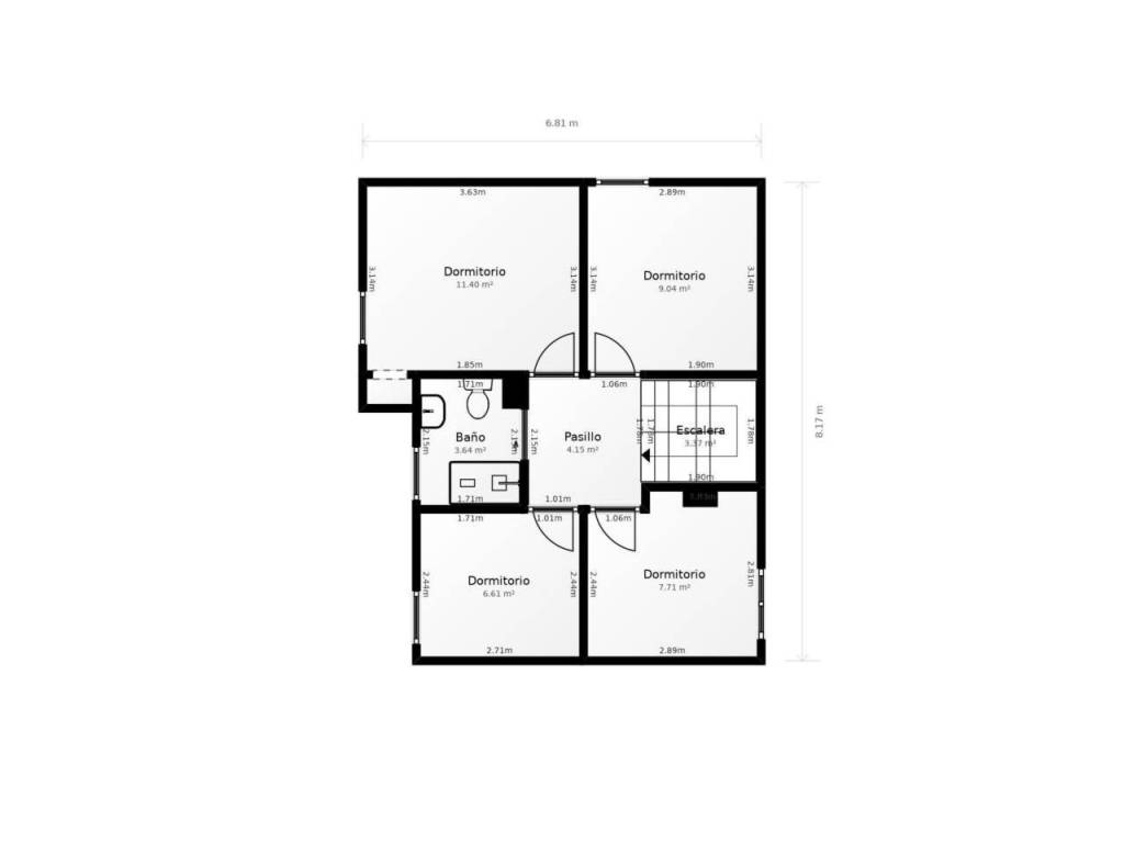 Planta Alta: Zona de descanso con 4 dormitorios luminosos y un baño completo.