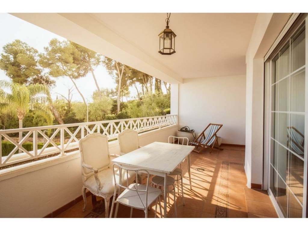 Ubicado en primera planta con ascensor, el apartamento destaca por su excelente luminosidad y su amplia terraza privada de 19 m², ideal para disfrutar del clima mediterráneo y de agradables vistas a las zonas verdes de la urbanización.