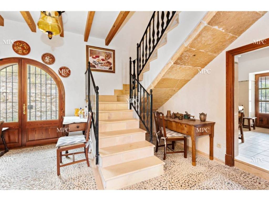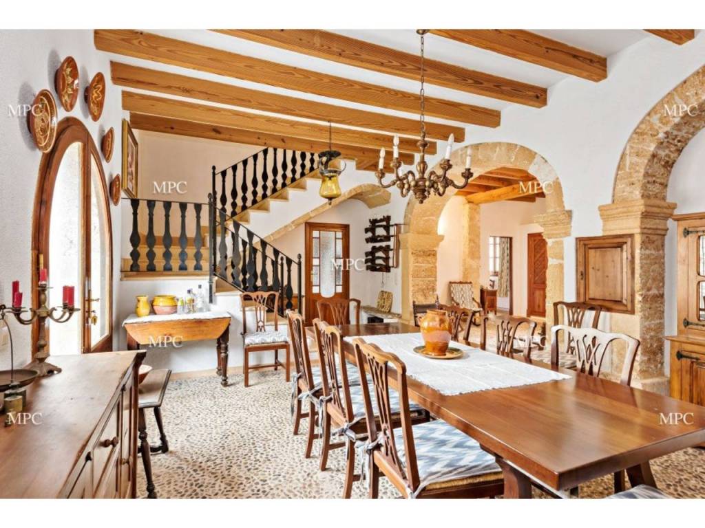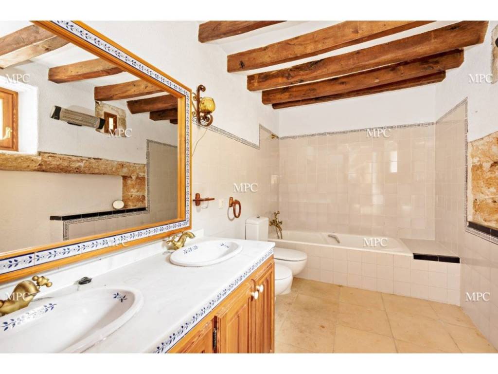 Casa de campo con características mallorquinas de aprox. 380 m². Tiene un amplio hall de recepción, dos habitaciones dobles, cocina, comedor con chimenea, cuarto de baño, despensa. En el primer piso hay un gran salón, cuatro dormitorios y un gran almacen con un techo muy alto. Hay otros edificios anexos, una casa que actualmente utilizado para eventos, con amplia cocina, comedor con chimenea cerrada, dormitorio doble, baño con ducha. En el primer piso hay un gran espacio abierto. Hay varias otras grandes áreas de almacenamiento utilizadas para fines agrícolas. Superficie total construida de 1807 m².