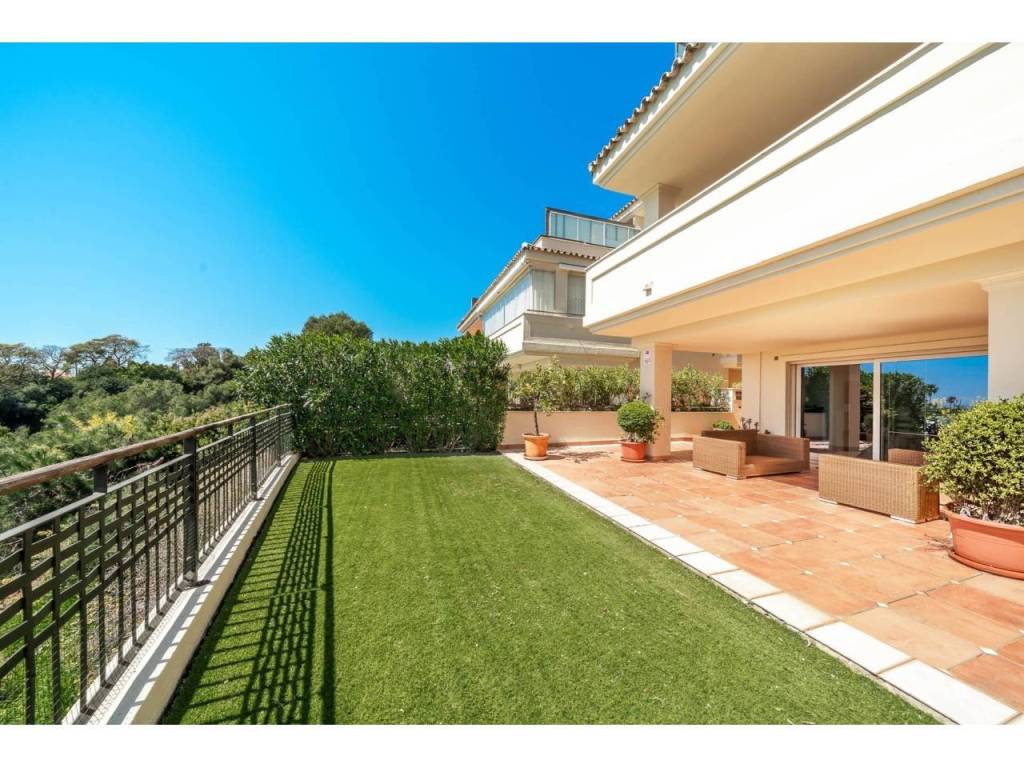 Ubicado en el prestigioso Condado de Sierra Blanca, en la codiciada Milla de Oro de Marbella, este elegante apartamento con jardín ofrece un estilo de vida distinguido, marcado por la privacidad, la seguridad y las vistas panorámicas al mar.