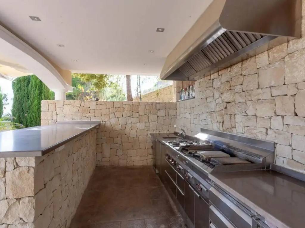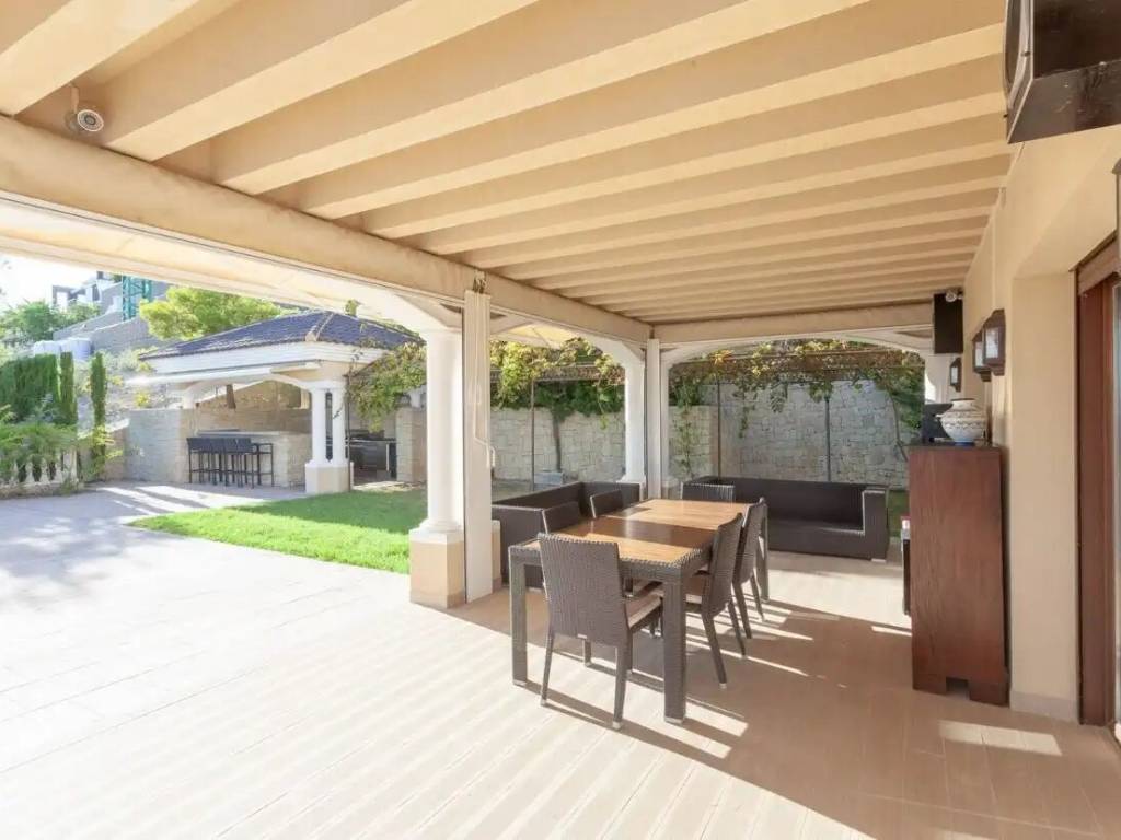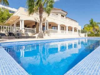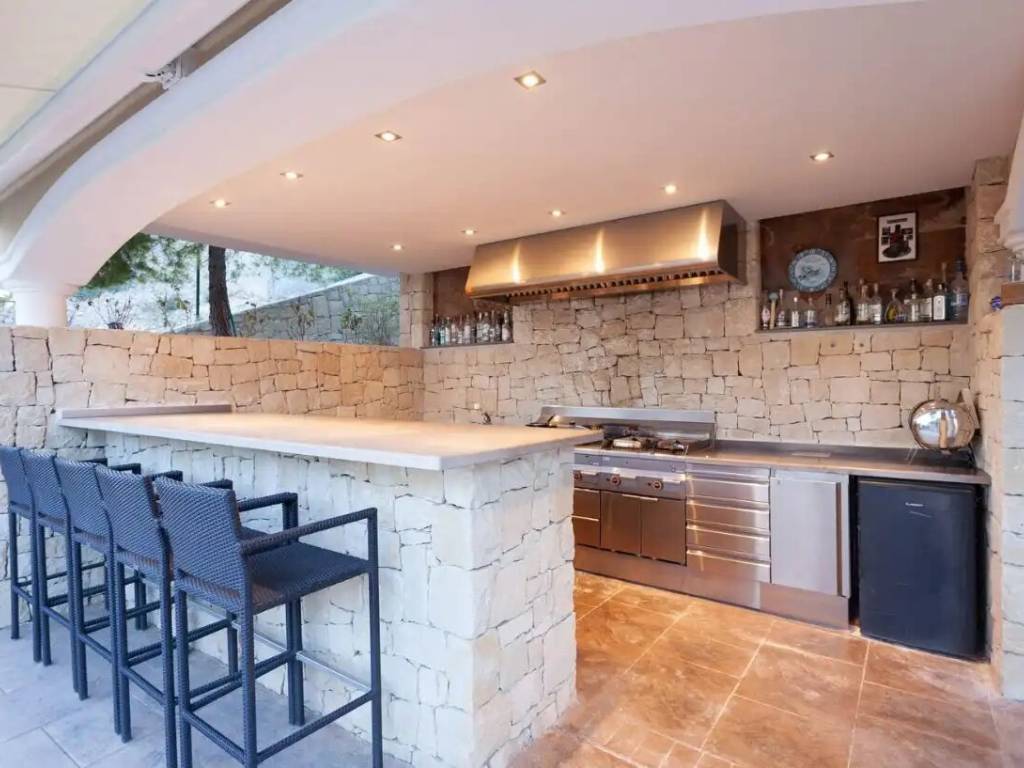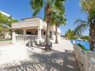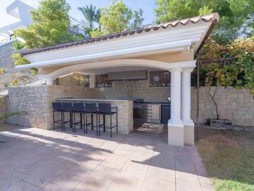 Villa Dorotea es una elegante villa que fue construida en 2014 en un magnífico lugar llamado Racó de Galeno. Las increíbles vistas y las zonas verdes casi infinitas pueden encantar a cualquiera, y el estilo mediterráneo de la villa complementa asombrosamente la naturaleza, haciendo que esta casa sea realmente única. La superficie de la parcela es de 1850 metros cuadrados, de los cuales 670 son la superficie de la propia villa. La casa tiene 3 plantas - planta baja, primer piso y segundo piso. La primera planta dispone de cocina, realizada en estilo clásico a partir de una madera natural. También hay un amplio comedor, que hace un espacio común con la sala de estar. En el centro de la sala de estar hay una chimenea moderna, adornada en piedra natural. Una iluminación especial en la villa se logra mediante el nivel dividido: una gran ventana panorámica con vistas al mar, colocada sobre las escaleras. En la segunda planta hay 4 dormitorios, cada uno de los cuales está equipado con un baño. Una de las características especiales de las habitaciones es un único balcón, que rodea la casa y conecta todas las habitaciones de esta planta. La planta baja tiene el área más grande de todos los pisos y allí se encuentran el gimnasio, armario, lavandería, sauna, jacuzzi, una habitación de invitados con baño y un cine en casa. Desde la planta baja se accede a un garaje, con capacidad para 4 coches y una sala de calderas. En el techo, hay paneles solares y una sala de servidores. Todas las plantas están conectadas por escaleras de madera natural y ascensor, y todas las habitaciones disponen de suelo radiante. En una gran parcela hay una piscina «Infinity» con una superficie de 80 metros cuadrados, que está hecha para ser una continuación visual del mar; un jardín con muchos árboles exóticos y viñedos; una zona de barbacoa y cocina al aire libre; y un aparcamiento exterior, donde se pueden colocar hasta 5 coches en un lugar acogedor bajo las palmeras.
