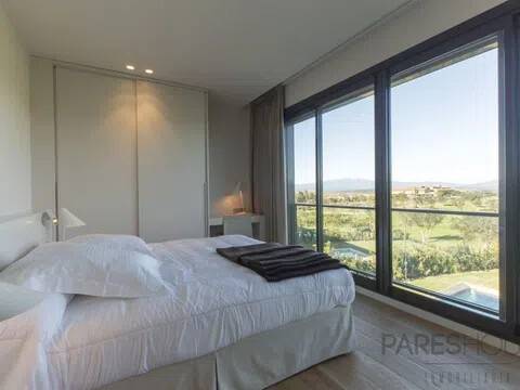 Casa en Alt Emporda, con 329 m² construidos, 720 m² metros de parcela, 5 dormitorios, 5 baños, 4 garaje/s, seminuevo, exterior, 5 armarios, 1 terraza(s), 30 m² de terraza, cocina equipada, amueblado, orientación noroeste, menos de 5 años, 2 plantas del edificio, calefacción individual, energía calefacción eléctrica, aire acondicionado frío/calor, agua caliente individual, energía agua eléctrica, suelo de parquet. Le ofrecemos la oportunidad de alquilar una semana una de las 8 magníficas villas de lujo, diseñadas para integrarse en un entorno natural único. Su ubicación privilegiada en el corazón del Empordà y la Costa Brava, su elegante diseño y arquitectura, el cuidado meticuloso de cada detalle, hacen de Villas du Golf de Peralada una promoción única e inclasificable. Distancias: 15 min de Figueres, 50 min del aeropuerto de Girona, 1 h 30 min de Barcelona, 2 h de Montpellier, 3 h 30 min de Marsella, 4 h 30 min de Lyon, 8 h de París. Desde la villa construida como una extensión del campo de golf, puede disfrutar de la vista hacia el verde desde todas las habitaciones de la casa, porque el jardín es una proyección hacia el golf. Desde la entrada principal, el ojo se ve atraído por la naturaleza sin ningún obstáculo visual que se oponga a un paisaje en movimiento con la piscina, el jardín y el campo de golf en perspectiva. Las villas están construidas a lo largo del hoyo 9, a 200 metros del Golf Hotel y a 200 metros del Caddy Master. Villa totalmente equipadas y amueblada. Villas Villa para disfrutar La villa vinculada al Campo de Golf se disfruta desde todas sus estancias porque éste y el jardín son una misma proyección. Toda la perspectiva de la naturaleza se evidencia desde la entrada principal, que sin ningún obstáculo visual nos descubre un emocionante paisaje con la piscina, el jardín y el Campo de Golf. Situadas a lo largo del hoyo 9, a 200mts del hotel y a 200mts del Caddy Master. Villa Villa equipada y amueblada: Tres plantas distribuidas en 330m2 Con una amplia zona de estar con un comedor, una zona de lectura y una sala de estar 5 habitaciones 5 cuartos de baño Cocina equipada Zona de servicio Lavadero independiente Ascensor Garaje 4 coches Piscina privada Jardín privado Alarma Climatización Superficie del terreno de 720m2.