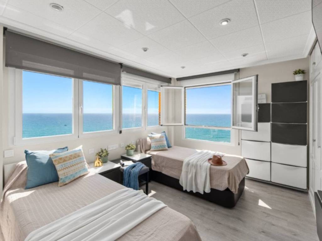 Orientado al sur y acabado con un alto nivel de calidad, el apartamento disfruta de impresionantes vistas al mar y a la costa. El salón y dos de los dormitorios, incluido el principal, gozan de fantásticas vistas al mar. El dormitorio principal cuenta con un diseño poco común de doble orientación, con ventanas en dos fachadas, lo que permite la entrada de luz natural y vistas desde varios ángulos.
