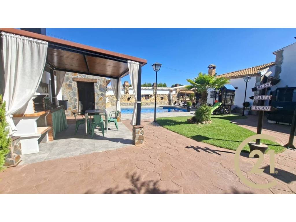 En el exterior, la propiedad cuenta con un jardín consolidado con piscina privada, zona de barbacoa y zonas verdes para disfrutar al aire libre.