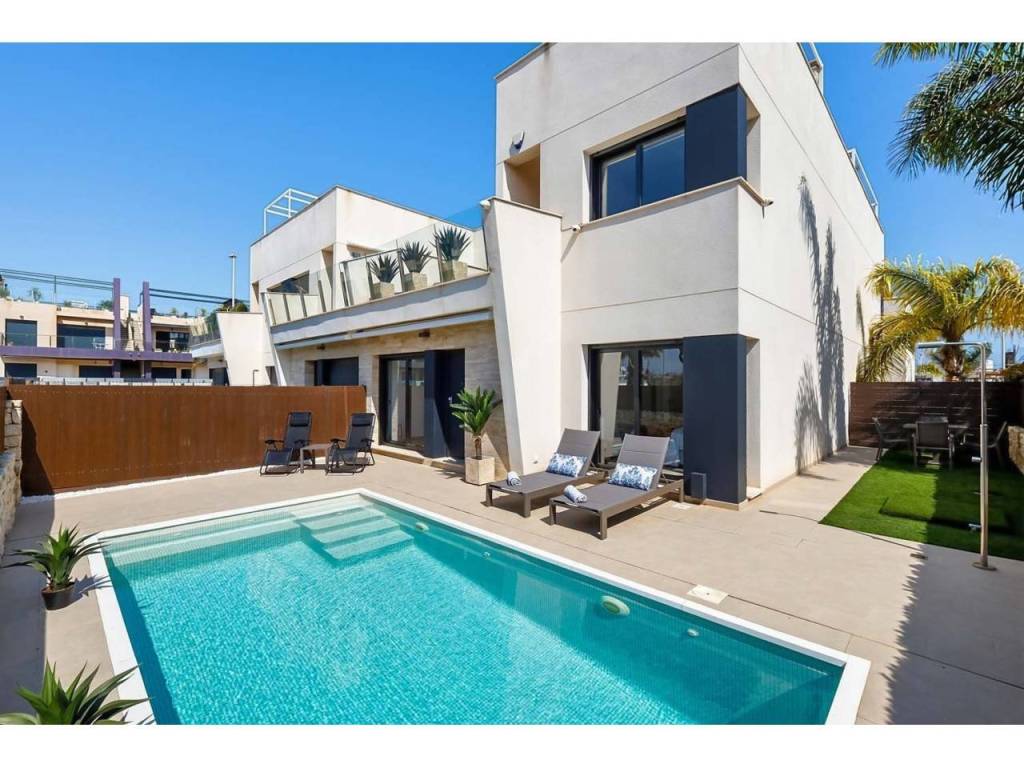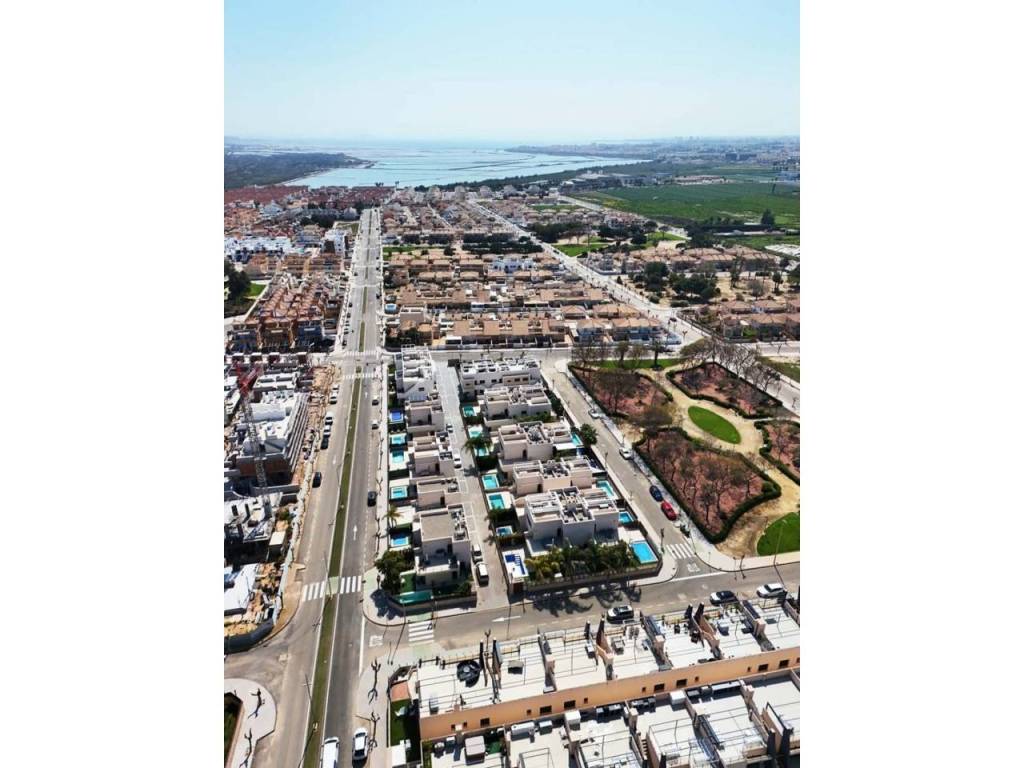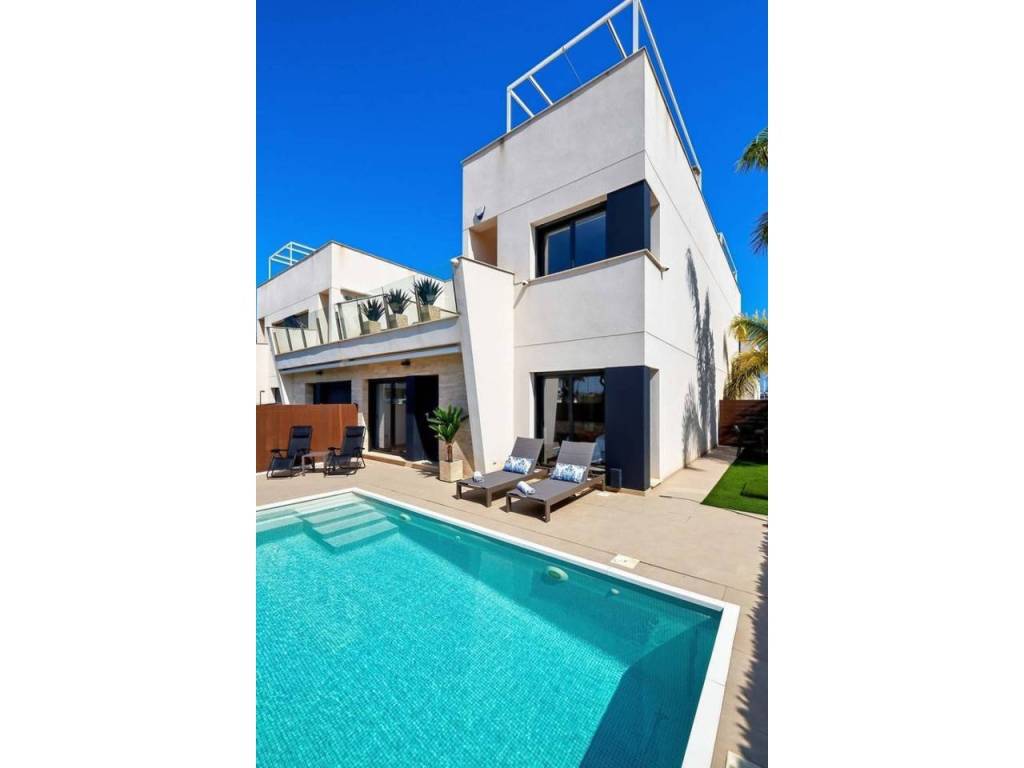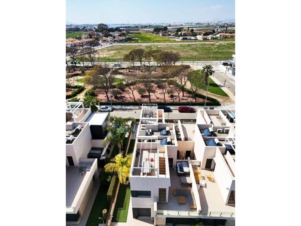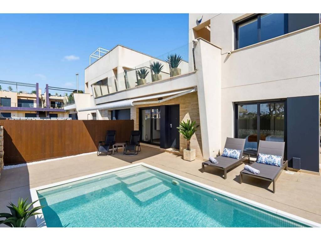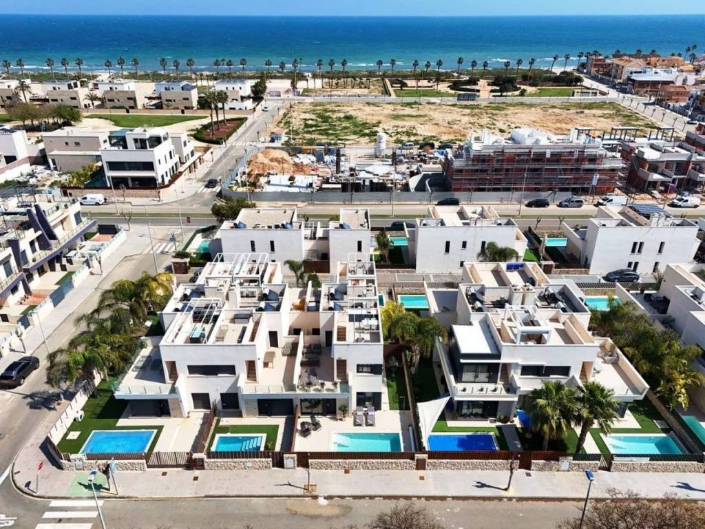 Villa adosada contemporánea con vistas a un parque verde – Comercializada en exclusiva por Horadada HomesEsta exclusiva residencia se caracteriza por su fantástica ubicación, a pocos metros de la playa de Las Higuericas en Torre de la Horadada, con espectaculares vistas al mar.Diseñada pensando en la comodidad y la funcionalidad, la propiedad cuenta con una distribución equilibrada e interiores luminosos, complementados por una piscina privada y acogedores espacios exteriores, perfectos para disfrutar del clima mediterráneo durante todo el año.La zona de estar principal presenta un luminoso diseño diáfano que conecta a la perfección el salón, el comedor y la cocina totalmente equipada. Grandes ventanales y puertas correderas inundan el espacio de luz natural, creando una fuerte conexión con las zonas exteriores.En la planta baja, la villa dispone de un amplio dormitorio doble y un moderno baño. Este dormitorio disfruta de vistas directas a la piscina y al jardín privado, con acceso directo al exterior, ideal para invitados o para disfrutar de una vida interior-exterior sin esfuerzo.En la planta superior, dos dormitorios adicionales ofrecen un alojamiento confortable, junto con un segundo baño con acabados de alta calidad.Un aspecto destacado de esta casa es su orientación abierta hacia un parque ajardinado. Al no tener propiedades justo enfrente, la villa disfruta de vistas verdes despejadas, mayor privacidad y un ambiente tranquilo y relajante.Los espacios exteriores son un verdadero atractivo. Además del jardín y la terraza, la propiedad cuenta con un solárium privado en la azotea con una cocina de verano totalmente equipada, una mesa de comedor de mármol y una zona de estar, todo ello elaborado con materiales de alta calidad y resistentes a la intemperie, diseñados para su durabilidad y disfrute durante todo el año. Desde aquí, podrá relajarse, recibir invitados y contemplar las vistas lejanas al mar con total comodidad.Tanto si busca una residencia permanente, una escapada vacacional o una inversión inteligente, esta villa ofrece una combinación excepcional de diseño moderno, acabados de calidad y una ubicación privilegiada.