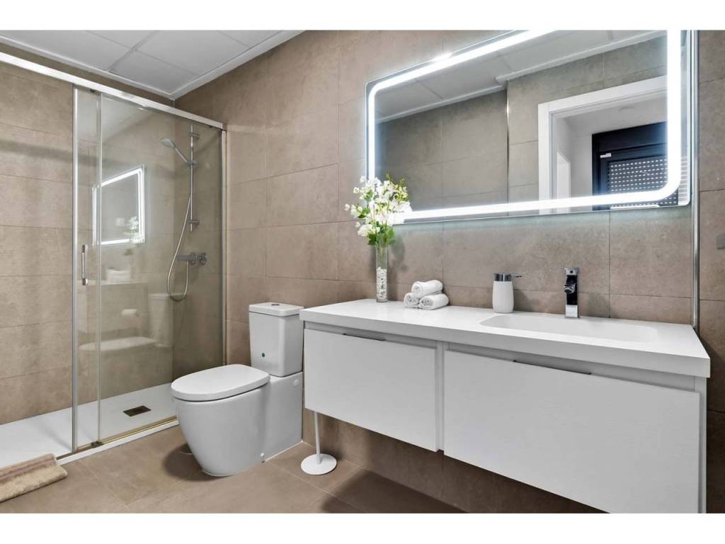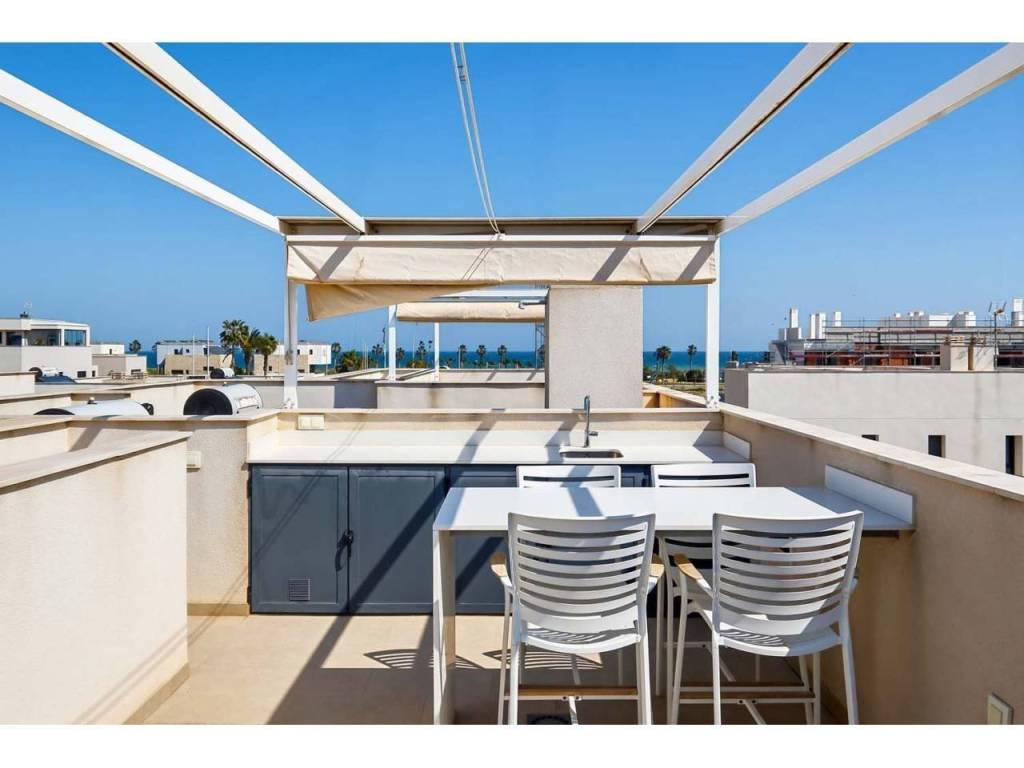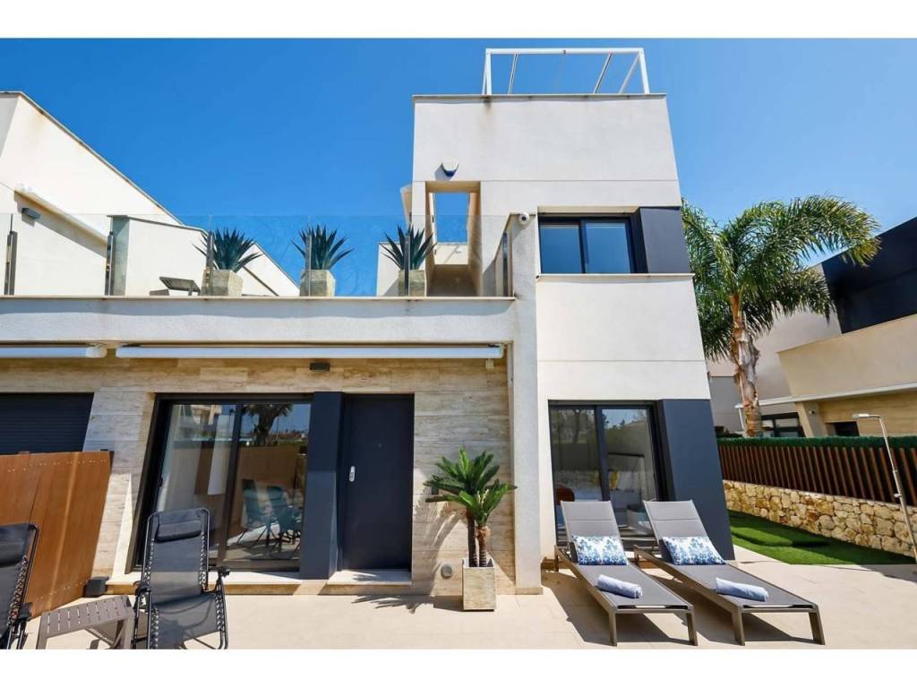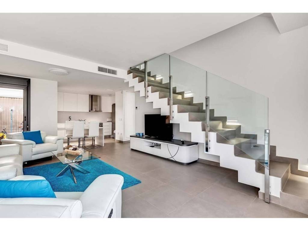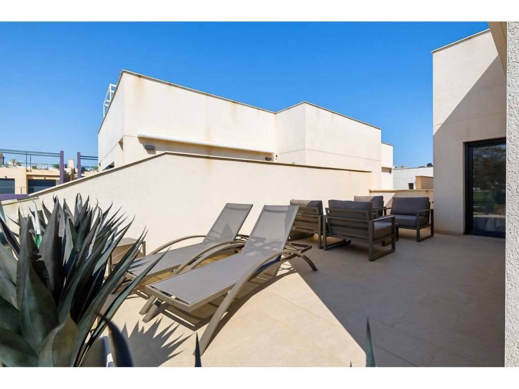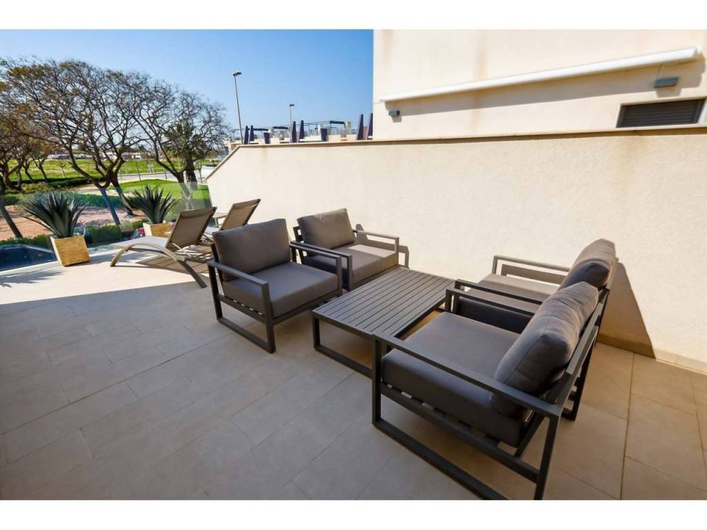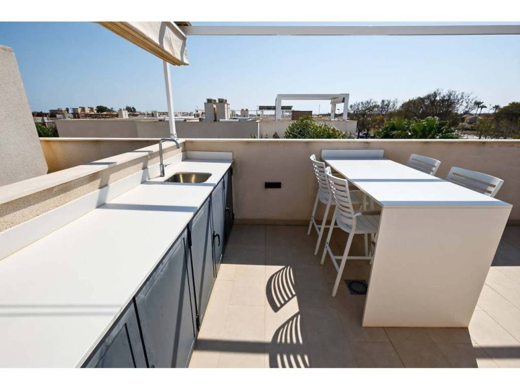 Villa adosada contemporánea con vistas a un parque verde – Comercializada en exclusiva por Horadada HomesEsta exclusiva residencia se caracteriza por su fantástica ubicación, a pocos metros de la playa de Las Higuericas en Torre de la Horadada, con espectaculares vistas al mar.Diseñada pensando en la comodidad y la funcionalidad, la propiedad cuenta con una distribución equilibrada e interiores luminosos, complementados por una piscina privada y acogedores espacios exteriores, perfectos para disfrutar del clima mediterráneo durante todo el año.La zona de estar principal presenta un luminoso diseño diáfano que conecta a la perfección el salón, el comedor y la cocina totalmente equipada. Grandes ventanales y puertas correderas inundan el espacio de luz natural, creando una fuerte conexión con las zonas exteriores.En la planta baja, la villa dispone de un amplio dormitorio doble y un moderno baño. Este dormitorio disfruta de vistas directas a la piscina y al jardín privado, con acceso directo al exterior, ideal para invitados o para disfrutar de una vida interior-exterior sin esfuerzo.En la planta superior, dos dormitorios adicionales ofrecen un alojamiento confortable, junto con un segundo baño con acabados de alta calidad.Un aspecto destacado de esta casa es su orientación abierta hacia un parque ajardinado. Al no tener propiedades justo enfrente, la villa disfruta de vistas verdes despejadas, mayor privacidad y un ambiente tranquilo y relajante.Los espacios exteriores son un verdadero atractivo. Además del jardín y la terraza, la propiedad cuenta con un solárium privado en la azotea con una cocina de verano totalmente equipada, una mesa de comedor de mármol y una zona de estar, todo ello elaborado con materiales de alta calidad y resistentes a la intemperie, diseñados para su durabilidad y disfrute durante todo el año. Desde aquí, podrá relajarse, recibir invitados y contemplar las vistas lejanas al mar con total comodidad.Tanto si busca una residencia permanente, una escapada vacacional o una inversión inteligente, esta villa ofrece una combinación excepcional de diseño moderno, acabados de calidad y una ubicación privilegiada.