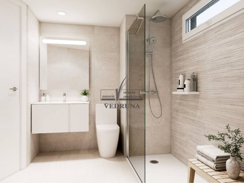 La vivienda está equipada con materiales de alta calidad de Porcelanosa y la carpintería exterior es PVC con doble acristalamiento y rotura de puente térmico. También está equipada con un sistema de aerotermia como energía alternativa para reducir los consumos y lograr así una mayor eficiencia energética. Esta maravillosa vivienda se distribuye en tres dormitorios, cocina equipada con campana extractora, placa de inducción, horno eléctrico multifunción, nevera, lavadora, lavavajillas de 45cm y fregadero de un seno con grifería monomando de bajo caudal, dos baños completos con ducha y salón con acceso a gran terraza (que comunica con el dormitorio principal). Uno de los baños está incorporado al dormitorio principal en suite y en ambos casos el plato de ducha es de Krión con mampara instalada y grifería termostática. Parking incluido.