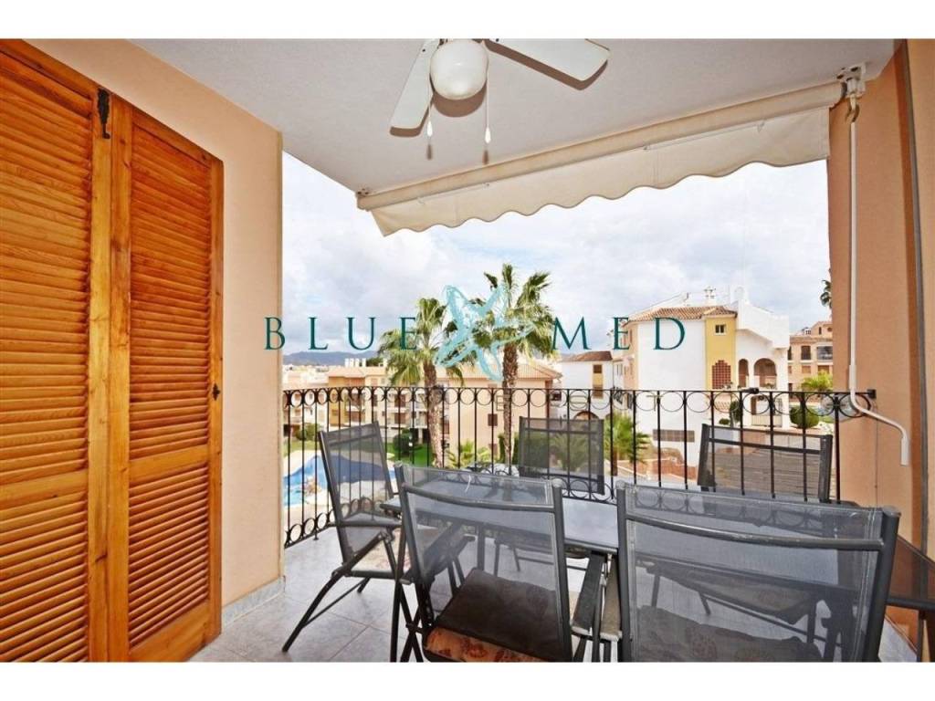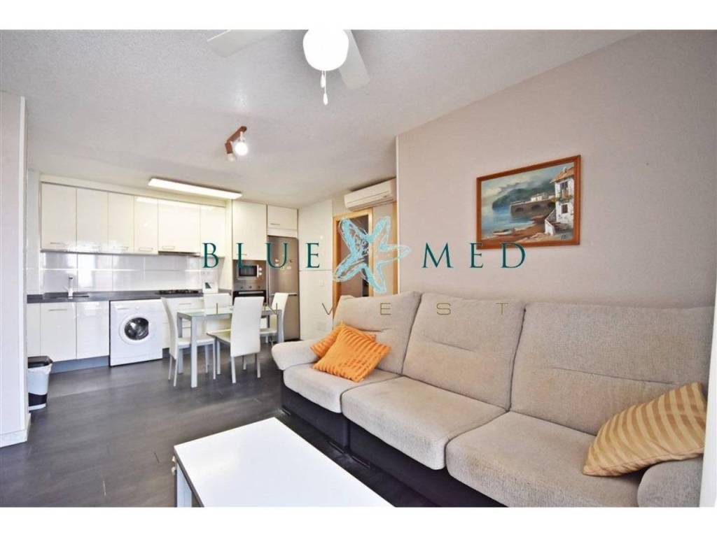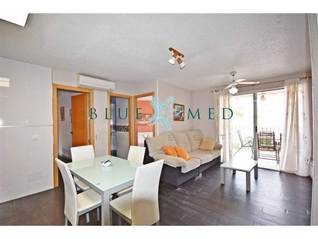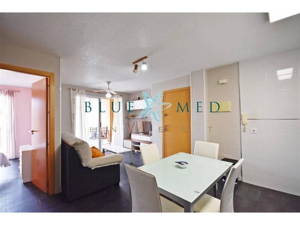 La vivienda, con una superficie construida de 64 m2, se encuentra totalmente reformada y amueblada, en muy buen estado de conservación. Dispone de dos habitaciones con armarios empotrados, un baño completo, salón luminoso con cocina americana y dos terrazas con vistas despejadas a la piscina. Orientación este, lo que garantiza luz natural durante gran parte del día.
