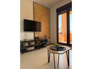 La vivienda cuenta con dos amplias habitaciones, ideales tanto para descanso como para teletrabajo, y dos baños completos que aportan comodidad y funcionalidad. El salón, acogedor y luminoso, se abre a una terraza privada con vistas despejadas, perfecta para desayunar al sol o relajarse al atardecer.