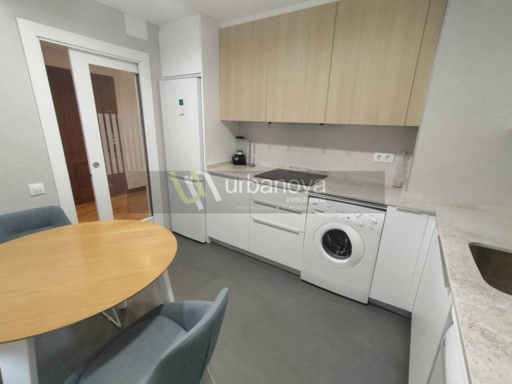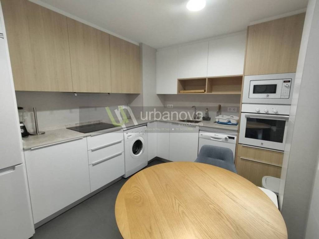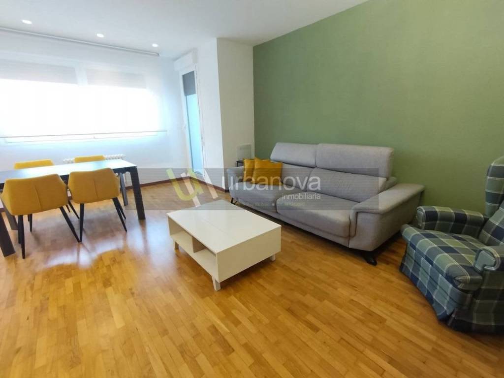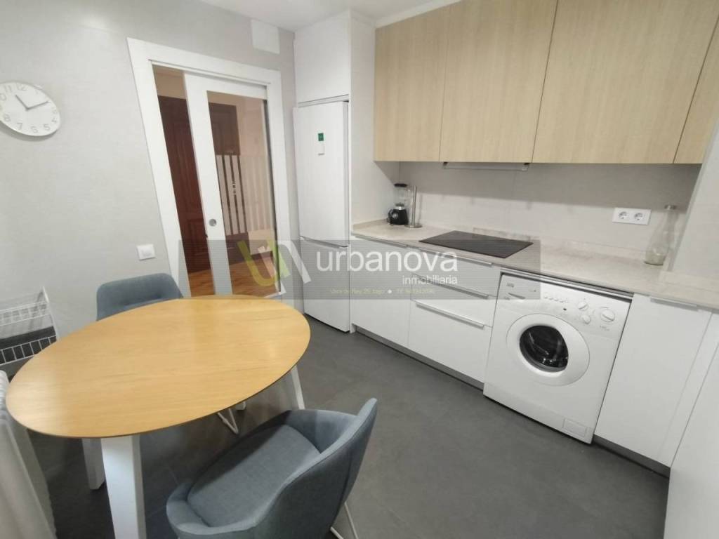 3 habitaciones con sus armarios empotrados, salón con salida a terraza de 4 metros, cocina amueblada y 2 baños. También tiene 2 armarios empotrados en el pasillo.