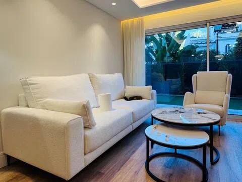Apartamento Moderno Totalmente Reformado en Urbanización Las Petunias, San Pedro de Alcántara - Marbella Adéntrate en este exquisito apartamento en planta baja en la prestigiosa Urbanización Las Petunias, ubicada en el upscale distrito de San Pedro de Alcántara en Marbella, en la soleada Costa del Sol. Este refugio junto al mar ofrece lo último en lujo costero, a solo un corto paseo de las arenas doradas de la Playa de San Pedro, el vibrante Paseo Marítimo con su variedad de restaurantes chic y beach clubs, y servicios cotidianos como el supermercado Carrefour. A apenas 5-10 minutos en coche del glamuroso puerto deportivo de Puerto Banús —con boutiques de diseño, harbours de yates y vida nocturna animada—, esta comunidad cerrada y segura brinda acceso fácil a campos de golf de clase mundial, colegios internacionales y la autovía A-7 para viajes rápidos a Estepona o al aeropuerto de Málaga. Abraza más de 300 días soleados al año en este enclave familiar, ideal para vida permanente, escapadas vacacionales o inversiones rentables en el próspero mercado de Marbella. Con 92 m² de espacio interior impecablemente renovado y un jardín privado de 41 m², esta joya con orientación este ha sido actualizada a los más altos estándares: nueva fontanería, electricidad, aire acondicionado y ventanas de alta calidad con persianas eléctricas para óptima eficiencia energética y confort. La distribución pensada incluye dos dormitorios amplios con armarios empotrados, dos baños modernos, un luminoso salón integrado con cocina abierta y acceso directo al jardín —perfecto para relax al aire libre entre exuberante vegetación—. Se vende totalmente amueblado y decorado en estilo contemporáneo, listo para entrar a vivir. Los residentes se benefician de jardines comunitarios bien mantenidos, una piscina refrescante y aparcamiento subterráneo seguro (plaza incluida), todo en un entorno de baja densidad y pacífico. Las características accesibles lo hacen adecuado para personas con movilidad reducida. Esta propiedad llave en mano es un hallazgo raro —contáctanos hoy para concertar una visita.