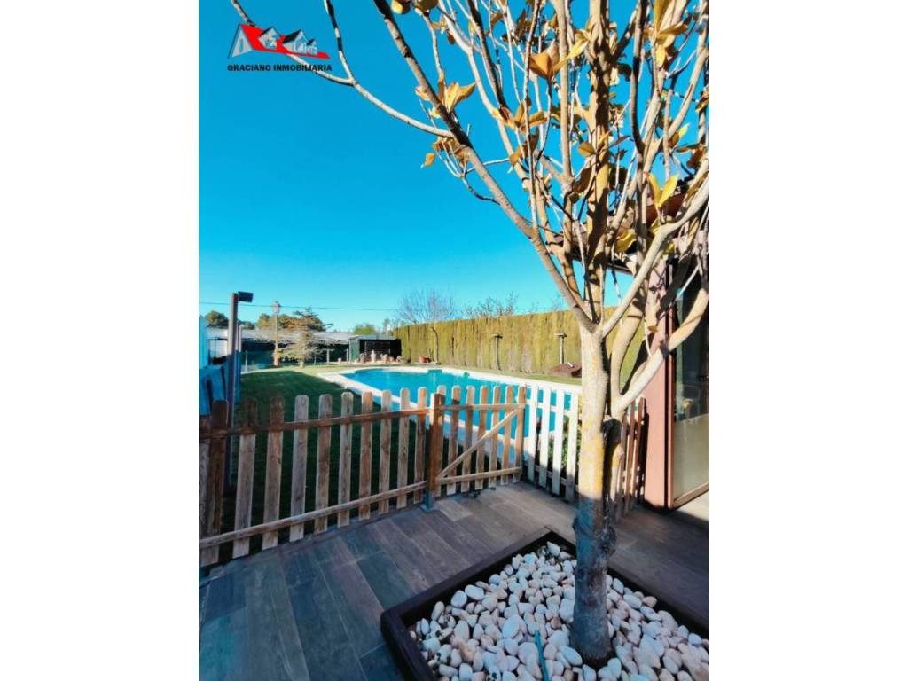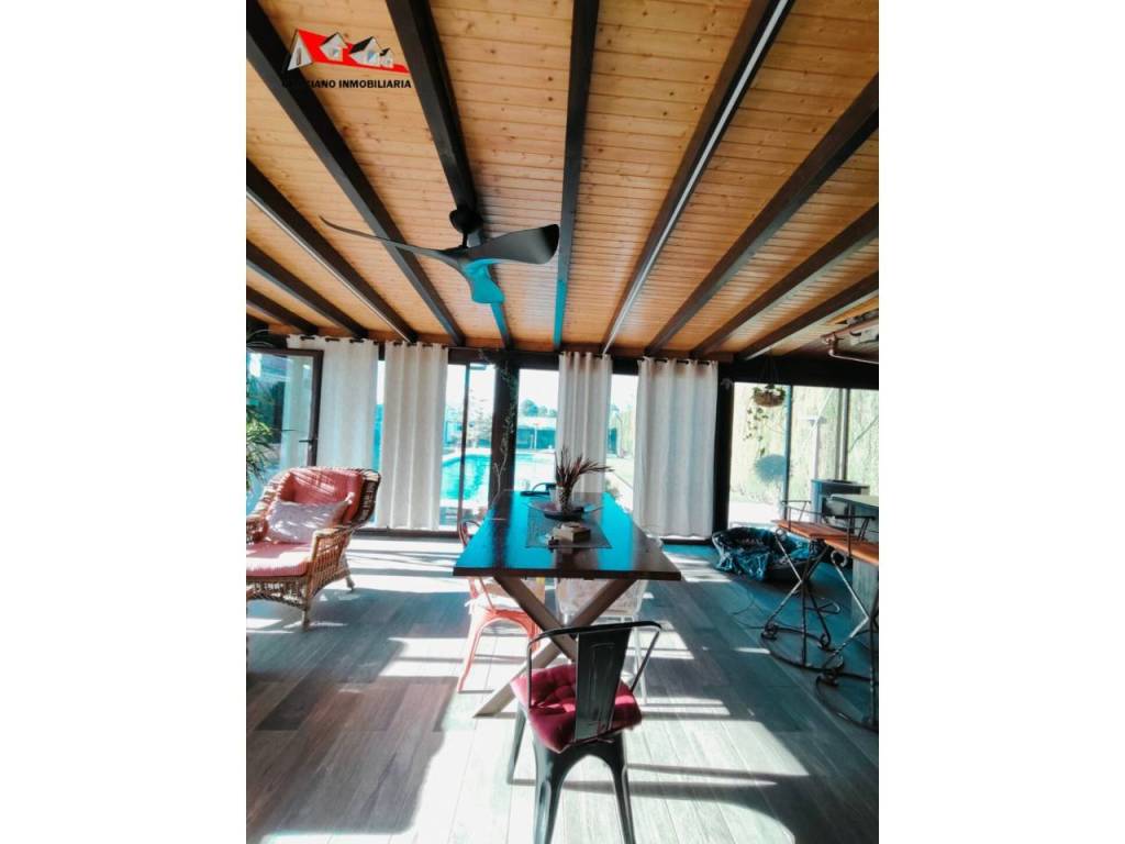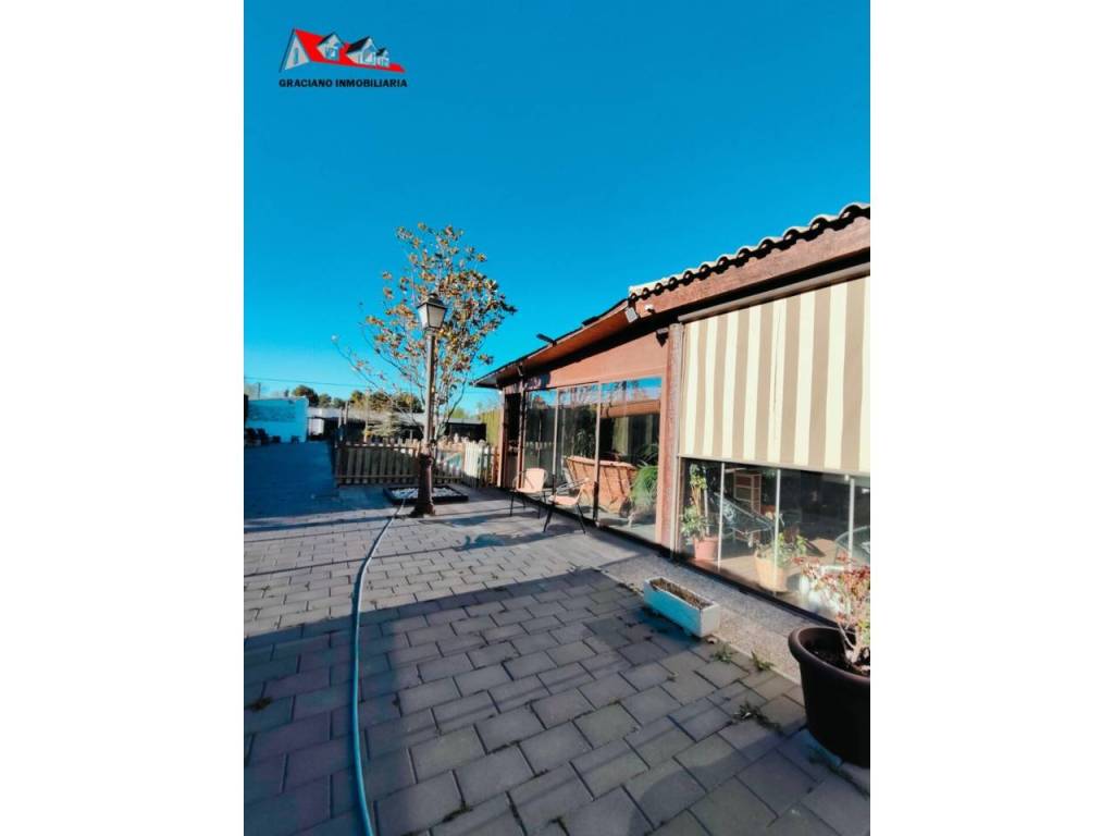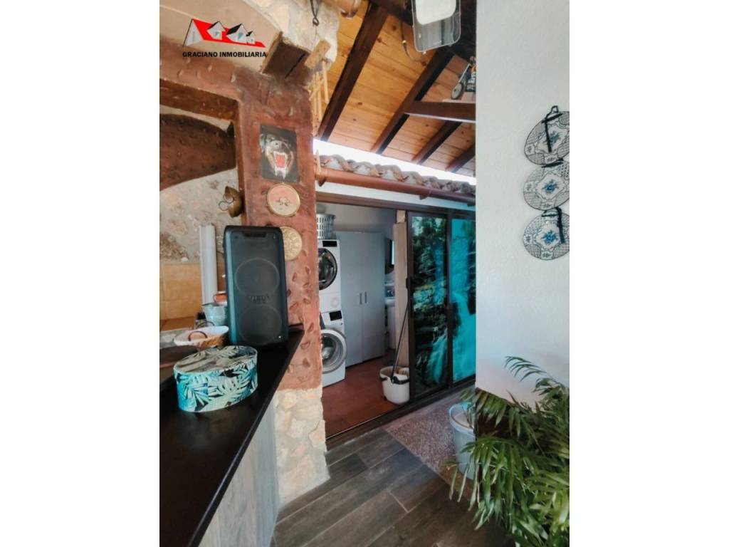 Además, la propiedad ofrece un porche acristalado de 35 m² aproximadamente con galería, zona de estar, barra de bar, barbacoa y aseo. También cuenta con garaje con capacidad para dos coches y una o dos motos, y una cocinilla independiente con horno de leña y chimenea.