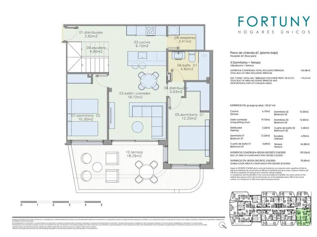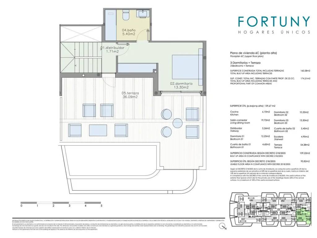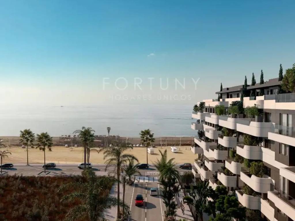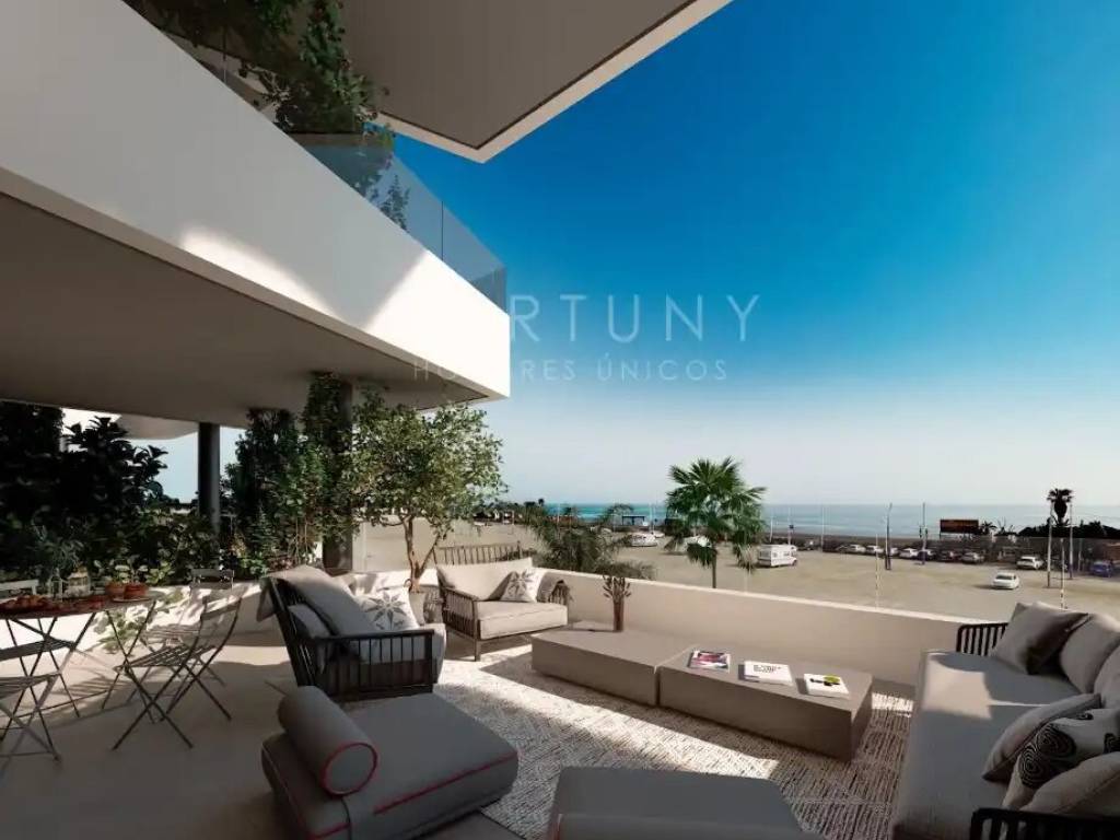 MODERNO Y LUMINOSO ÁTICO DE TRES DORMITORIOS DE DISEÑO VANGUARDISTA Y SOFISTICADO EN PRIMERA LÍNEA DE PLAYA Y CON VISTAS AL MAR EN TORRE DEL MAR Fortuny Hogares Únicos presenta este magnífico ático en primera línea de playa y con vistas al mar en un edificio de seis alturas y 52 viviendas de dos y tres dormitorios, ubicado en una de las mejores zonas residenciales de Torre del Mar, Sup T12. Ubicación Ubicado en en Torre del Mar, el ático disfruta de una privilegiada posición en primera línea de playa, ofreciendo vistas abiertas al mar y acceso directo al paseo marítimo. Situado en una de las áreas más demandadas de la Axarquía, combina la tranquilidad de un entorno residencial con la cercanía a todos los servicios: restaurantes, comercios, supermercados y zonas de ocio. Su excelente conexión con Málaga y otras localidades cercanas la convierte en una ubicación ideal tanto para residencia habitual como para segunda vivienda, donde disfrutar del clima, el mar y el estilo de vida característico de la Costa del Sol. Distribución El ático consta de una superficie total construida de 165m2, 132m2 útiles de vivienda, 18m2 de terraza a pie de vivienda y 36m2 de solárium. Se distribuye en dos plantas: Planta baja Consta de un hall de entrada, un amplio, cómodo y luminoso salón-comedor con salida a la terraza de 18m2. Una cocina americana abierta al salón totalmente amueblada, una despensa, un pasillo distribuidor, dos dormitorios con armarios empotrados. Un cuarto de baño completo que da servicio a las estancias de esta planta. A través de una escalera se accede a la planta alta. Planta alta Consta de un pasillo distribuidor con salida al solárium, el dormitorio principal con armarios empotrados y un cuarto de baño en suite. El dormitorio cuenta con salida directa al solárium con espacio para zona chill-out y comedor al aire libre. Calidades La vivienda cuenta con los más altos estándares de construcción y excelentes calidades. Destacamos puerta de entrada de seguridad, puertas de paso lacadas en blanco, suelos de tarima de madera, aire acondicionado frío/calor por conductos, ventanas de doble acristalamiento, aerotermia para el agua caliente, baños de la marca Roca, cocina totalmente equipada con electrodomésticos: fregadero y frio, frigorífico, vitrocerámica, campana extractora de humos, horno, microondas, lavavajillas y lavadora. Solería en terrazas de gres. Zonas comunes Las zonas comunes están pensadas para el disfrute de todos los vecinos con zona ajardinada y una piscina con agua salina. El edificio cuenta con ascensor, está adaptado para personas con movilidad reducida. La vivienda cuenta con una plaza de aparcamiento con precarga para vehículos eléctricos y un trastero, incluidos en el precio. Normativa Certificado de eficiencia energética: “A”. En cumplimiento del RD de la Junta de Andalucía 218/2005 de 11 de octubre se informa a los Sres. consumidores que en el precio indicado no están incluidos los gastos derivados de la compraventa de la propiedad según las leyes vigentes (ITP, gastos notariales y en caso de obra nueva el impuesto de IVA). Contáctenos Para más información no dude ponerse en contacto con nosotros. Estaremos encantados de atenderle.