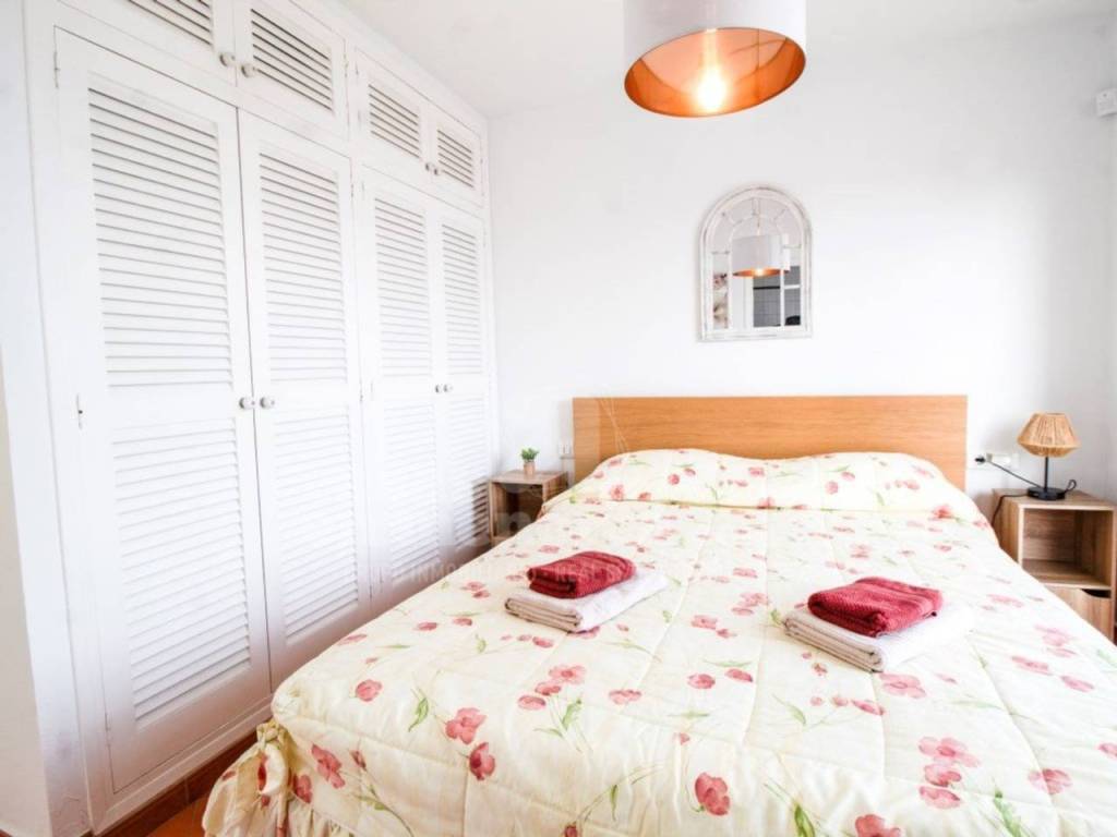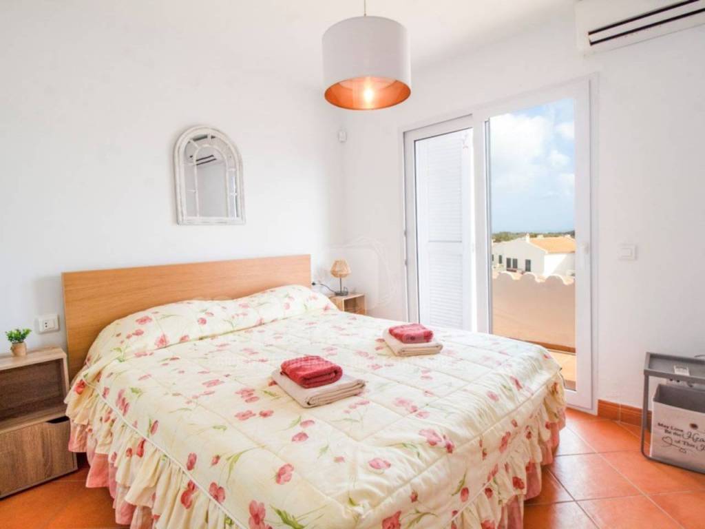 La planta superior alberga un dormitorio doble con armarios empotrados, baño en suite y acceso a una terraza privada con agradables vistas lejanas al mar.