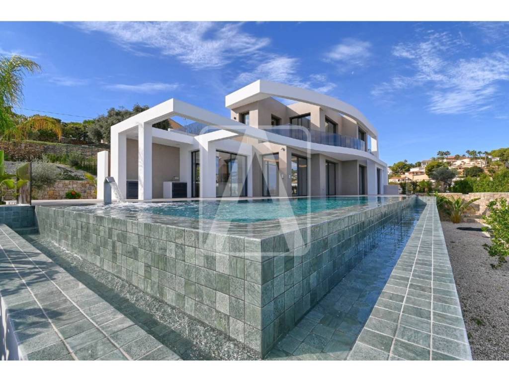 Villa de lujo de nueva construcción en venta en Benissa, junto a la Playa La Fustera, situada en una zona consolidada, a 300 metros (4 minutos andando) de la Playa La Fustera y de servicios (restaurantes, supermercado, parada de autobús…), a 800 metros (11 minutos andando) del Puerto Deportivo Les Bassetes, a 4 Km de Cala Advocat, a 4,4 Km de Cala Baladrar y muy bien comunicada con el centro urbano de Calpe y de Moraira. Esta villa disfruta de impresionantes vistas panorámicas al mar y a la Bahía de Moraira, y de estupendos amaneceres (orientación Este). Se encuentra ubicada en una amplia parcela de 1.170 m2 y cuenta con una superficie total construida de 475 m2 distribuidos en 2 plantas (+ planta sótano), de la siguiente manera: en la planta principal tenemos el hall de entrada, 2 amplios dormitorios (18 m2 + 16 m2, dormitorio principal con amplio vestidor), 2 baños (1 en-suite), magnífico salón comedor cocina de 55 m2 (concepto todo abierto, con isla), y amplio porche (con barbacoa y comedor de verano integrados), que se fusiona con la terraza exterior de 125 m2 donde tenemos una piscina rectangular de 12x4,5 metros con efecto sin fin. Se accede a la planta alta y a la planta baja a través de una escalera interior de bonito diseño. En la planta alta tenemos el vestíbulo y 2 impresionantes dormitorios (19 m2 + 14 m2), ambos con vestidor, baño en-suite y terraza privada. En la planta sótano (220 m2), tenemos una bodega muy bien equipada, una sala de cine de 22 m2, gimnasio, sauna, zona relax y piscina climatizada de 10x3,30 metros (con luz natural y con increíble ventana al interior de la piscina exterior), 1 baño completo, sala de juegos (sala multiusos) de 45 m2 (con luz natural), amplio lavadero y cuarto técnico. Esta magnífica residencia destaca por sus grandes ventanales en todas sus estancias, por su luminosidad, sus acabados y calidades. Está equipada con suelo radiante y con climatización por conductos (sistema aerotermia de mínimo consumo y máxima eficiencia), cocina de diseño moderno con muebles altos y bajos con campana extractora en techo con mando a distancia, equipada con electrodomésticos de alta gama (horno, microondas, lavavajillas, frigorífico y placa vitrocerámica), alarma, carpintería exterior de alta gama con vidrio de baja emisividad y con persianas automatizadas, carpintería interior con armarios forrados y puertas de paso de diseño con bisagras ocultas y cierre magnético, sanitarios suspendidos y grifería de alta gama, muebles de baño con espejo y mamparas en ducha, alicatados en baños y aseos en azulejo porcelánico y suelo de la vivienda de pavimento porcelánico de gran formato, iluminación LED en el interior de la vivienda y apliques en las fachadas exteriores de la vivienda, preinstalación alarma exterior, preinstalación cctv… Además, dispone de amplia zona de aparcamiento exterior para varios vehículos ubicada junto a la entrada principal de la propiedad. El jardín es muy bonito, de estilo mediterráneo, con muros de piedra natural y espacios diferenciados que generan entornos muy agradables y acogedores y además está equipado con riego automático (bajo mantenimiento) e iluminación exterior. Sin duda una magnifica propiedad a menos de 5 minutos andando de la Playa La Fustera (uno de los rincones más bonitos de la Costa Blanca).