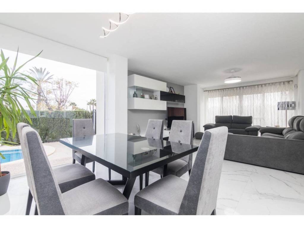 Alenda INMOURBANA, en su oficina en frente de la tienda (Dicost). te presenta este mágnifico chalet con piscina en parcela de 850 metros, completamente reformado para entrar a vivir ahora mismo. Ubicado en la prestigiosa urbanización de ALENDA GOLF, dotada de servicios particulares como COLEGIO MAYOR Alberto Magno, restaurante, cafeteria, Gimnasio, Pistas de Paddel, y su estupendo campo de Golf de dieciocho hoyos.