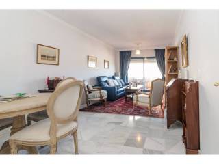 Amplio piso de tres dormitorios con garaje, situado en avenida Ramón y Cajal, en pleno centro de Marbella, dotado de fantásticas vistas al mar y a la montaña, ubicado en una planta alta del edificio en el que se encuentra, en segunda línea de playa y muy cercano al casco antiguo, Muy cómodo por disponer de todos los servicios y comercios alrededor así como de la zona de ocio. A la playa en 2 minutos a pie. Abundante luz natural gracias a la planta donde se encuentra y por su orientación. La vivienda dispone de tres dormitorios amplios con armarios empotrados, dos baños completos, uno de ellos en suite, cocina equipada e independiente con lavadero, espacioso salón con vistas abiertas, dos terrazas, la prncipal con vistas panorámicas increibles, garaje y trastero. Piscina en la cubierta del edificio.