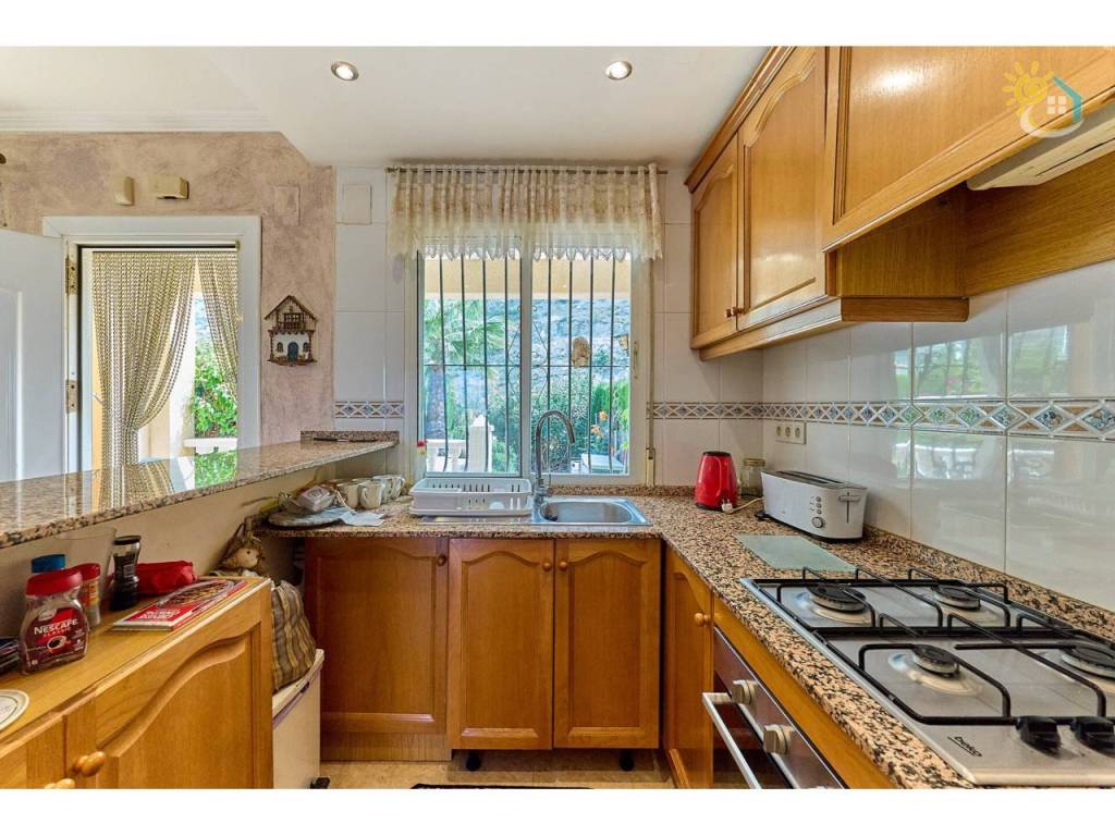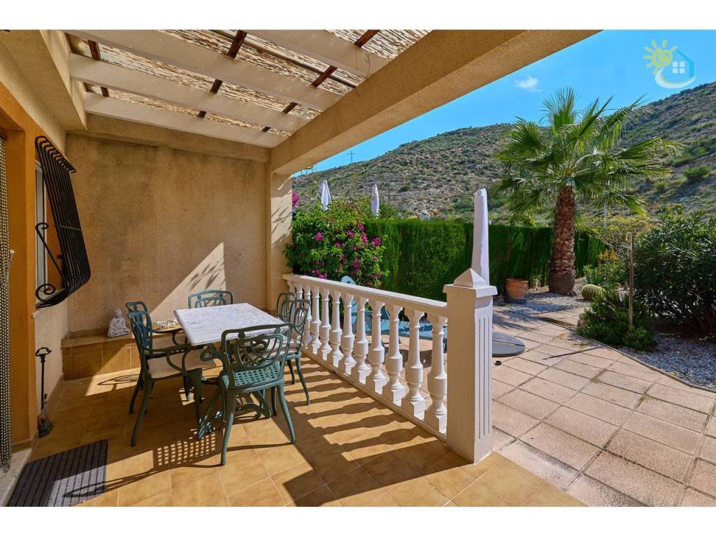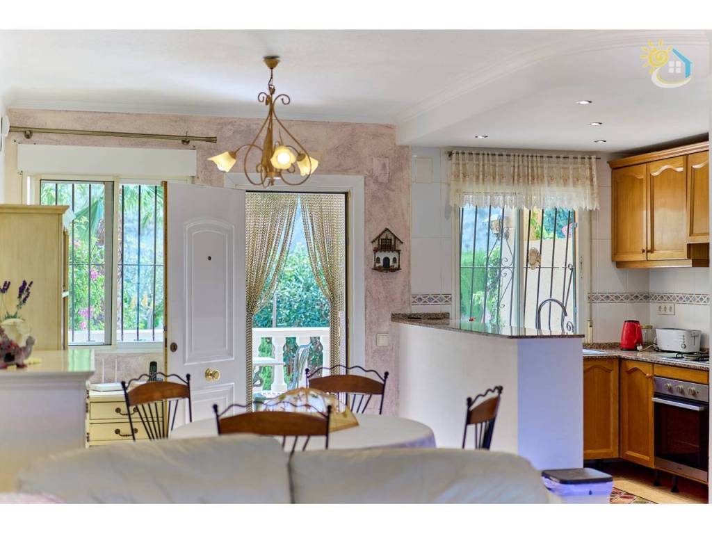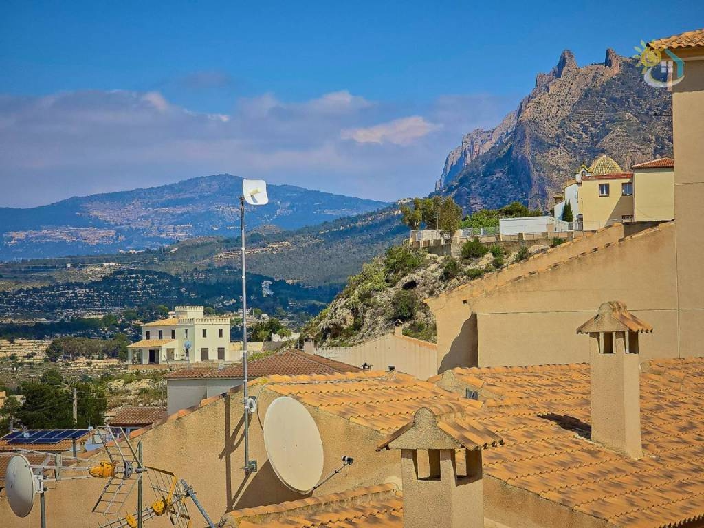 Ahora le invitaremos a entrar en la propiedad, acompañándole a través del precioso jardín delantero, ya maduro, que le ofrece una amplia variedad de flores y plantas de estilo mediterráneo, además de un espacio exterior ideal para recibir a amigos y familiares, con un porche cubierto y vistas hacia la ladera. Al adentrarnos en el interior de la propiedad, le da la bienvenida una luminosa cocina abierta, un comedor, un aseo y un salón que da a una terraza con vistas panorámicas de las montañas. Esta terraza ofrece un amplio espacio para relajarse y también tiene la posibilidad de acristalarse para crear una habitación adicional durante los meses de invierno. Ahora le guiaremos hacia la planta superior, donde se encuentran los dos dormitorios dobles con armarios empotrados y un cuarto de baño familiar para compartir. El dormitorio principal te ofrece una oportunidad más para disfrutar de esas impresionantes vistas de la extensa cordillera, que cambia de color a lo largo del día, y desde cuya terraza exterior podrás contemplar las increíbles puestas de sol o tomarte un café por la mañana mientras contemplas en silencio la inmensidad de lo que la naturaleza nos ofrece.