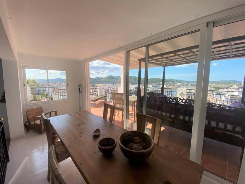 La vivienda dispone da espacios amplios y luminosos. Varias terrazas en diferentes niveles, ideal para relajarse con amigos, cual ofrecen vistas abiertas sobre la ciudad, el puerto, las montañas de Ibiza y diariamente a la puesta del sol.