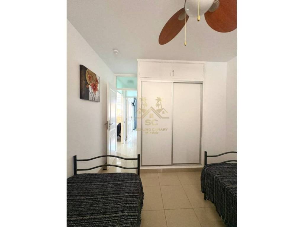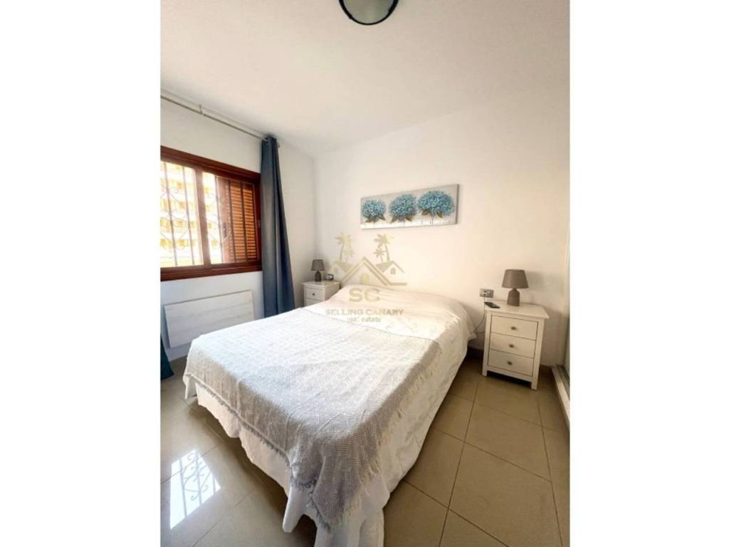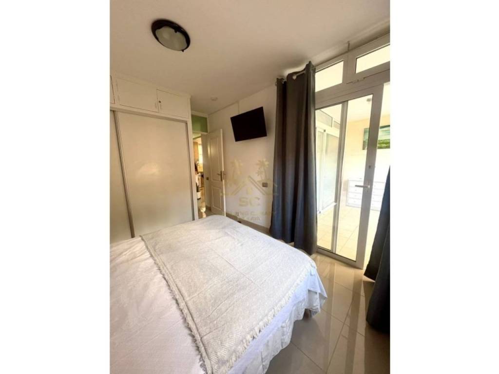 Nos complace presentar este elegante apartamento reformado en Los Cristianos, zona muy demandada por los turistas del sur de la isla, a un minuto andando de las maravillosas playas, cerca de supermercados, bares, restaurantes, centro comerciales, tiendas, transporte publico y de todos los servicios necesarios.Esta exclusiva propiedad de dos habitaciones, se encuentra en la planta baja de un esplendido complejo con zonas verdes y piscinas al aire libre, zona solarium, ascensor y videovigilancia.El inmueble cuenta con una habitacion doble con armario empotrado y ventana, una habitacion matrimonial con un gran armario empotrado y acceso a la terraza, un moderno bano con ducha y un amplia sala con salon comedor y una moderna cocina equipada con todos los electrodomesticos necesarios en un unico luminoso ambiente desde el cual se puede acceder a una gran terrazza con vistas a las piscinas donde poder disfrutar de la tranquilidad del complejo.No pierdas esta oportunidad, consultanos para mas informacion.