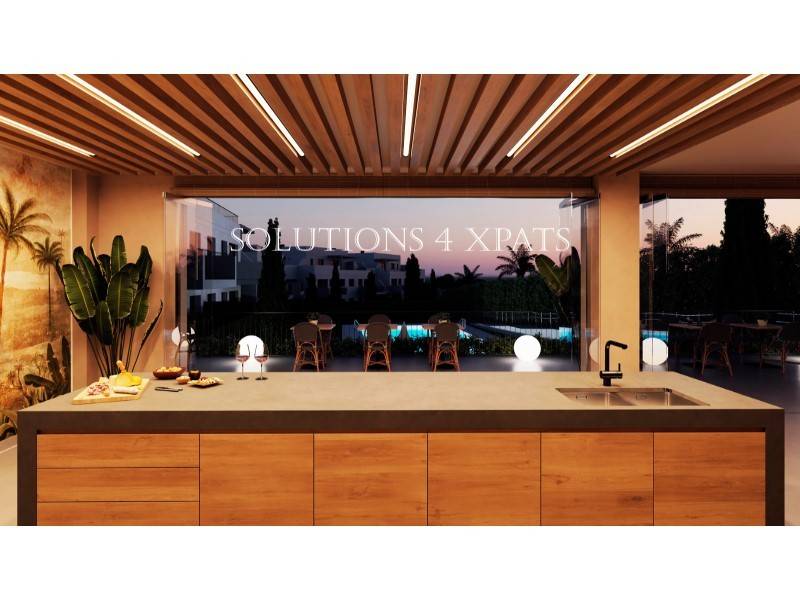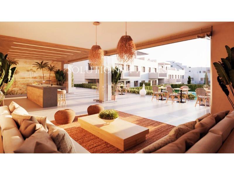Bello conjunto residencial de apartamentos de 2 y 3 dormitorios con 2 baños a estrenar en una urbanización privada con piscina, jardines, gimnasio y salón social-gourmet comunitarios en una bella zona residencial al lado del club y campo de golf Baviera Golf con su restaurante y cafetería, y a sólo 5 minutos en coche de la playa, negocios, tiendas, restaurantes, supermercado, etc.